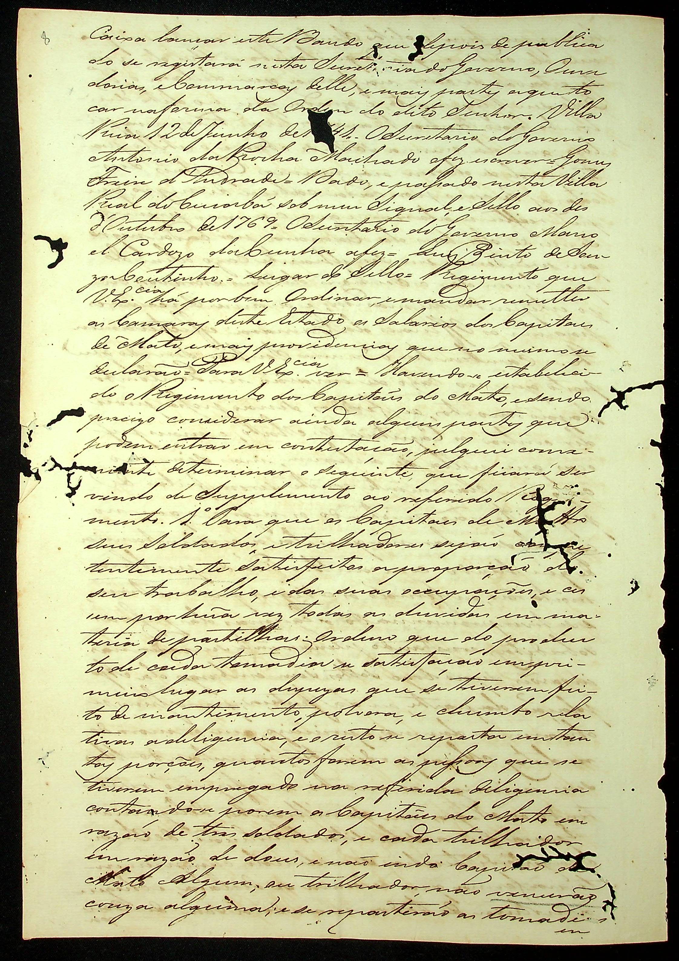 REGIMENTO (Cópia) dos Capitães-do-Mato passado pelo Governador e Capitão-General da Capitania de Mato Grosso Luiz Pinto de Souza Coutinho.