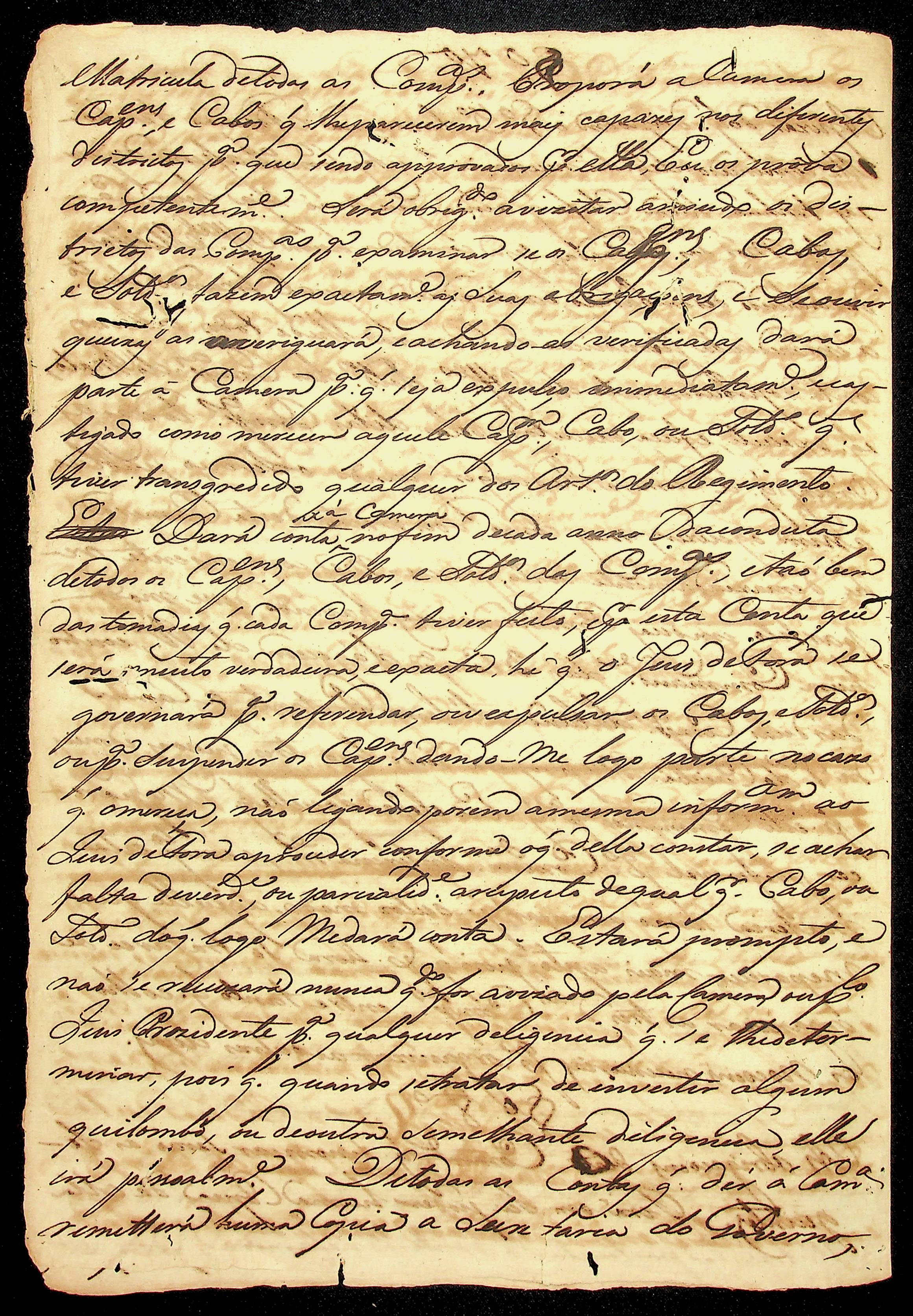 REGIMENTO expedido pelo [Governador e Capitão-General da Capitania de Mato Grosso João Carlos Augusto d´ Oeynhausen e Gravemberg], referente a representação feita pelos moradores de Cuiabá sobre o prejuízo com a fuga de escravos.