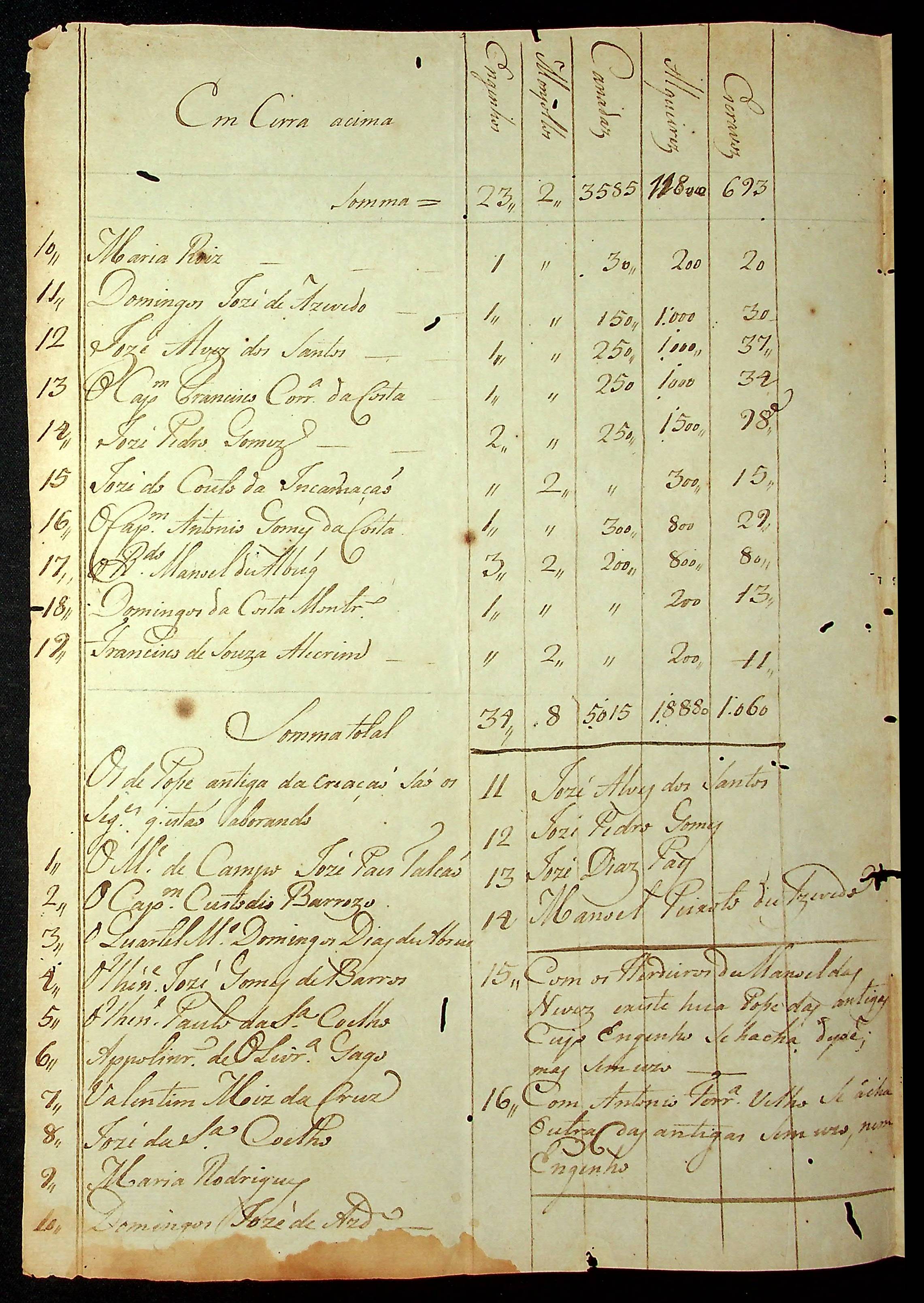 RELAÇÃO dos engenhos de fazer cachaça e farinha e monjolo existentes desde Vila Maria do Paraguai até Fazenda de São Lourenço.