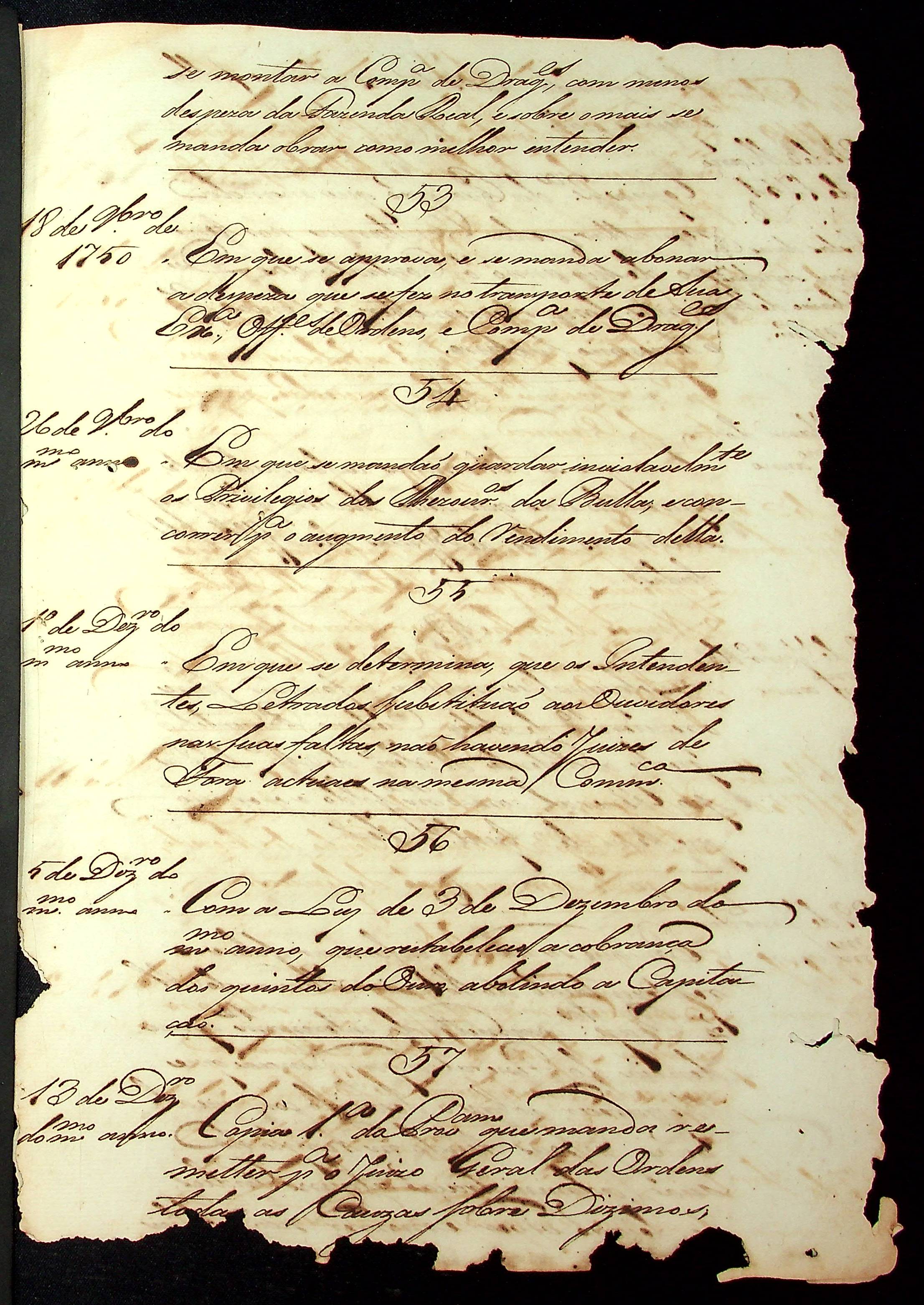 RELAÇÃO (Index) das provisões do Conselho Ultramarino que existem nesta Secretaria de Governo da Capitania de Mato Grosso, compreendidas de baixo de seus respectivos números.