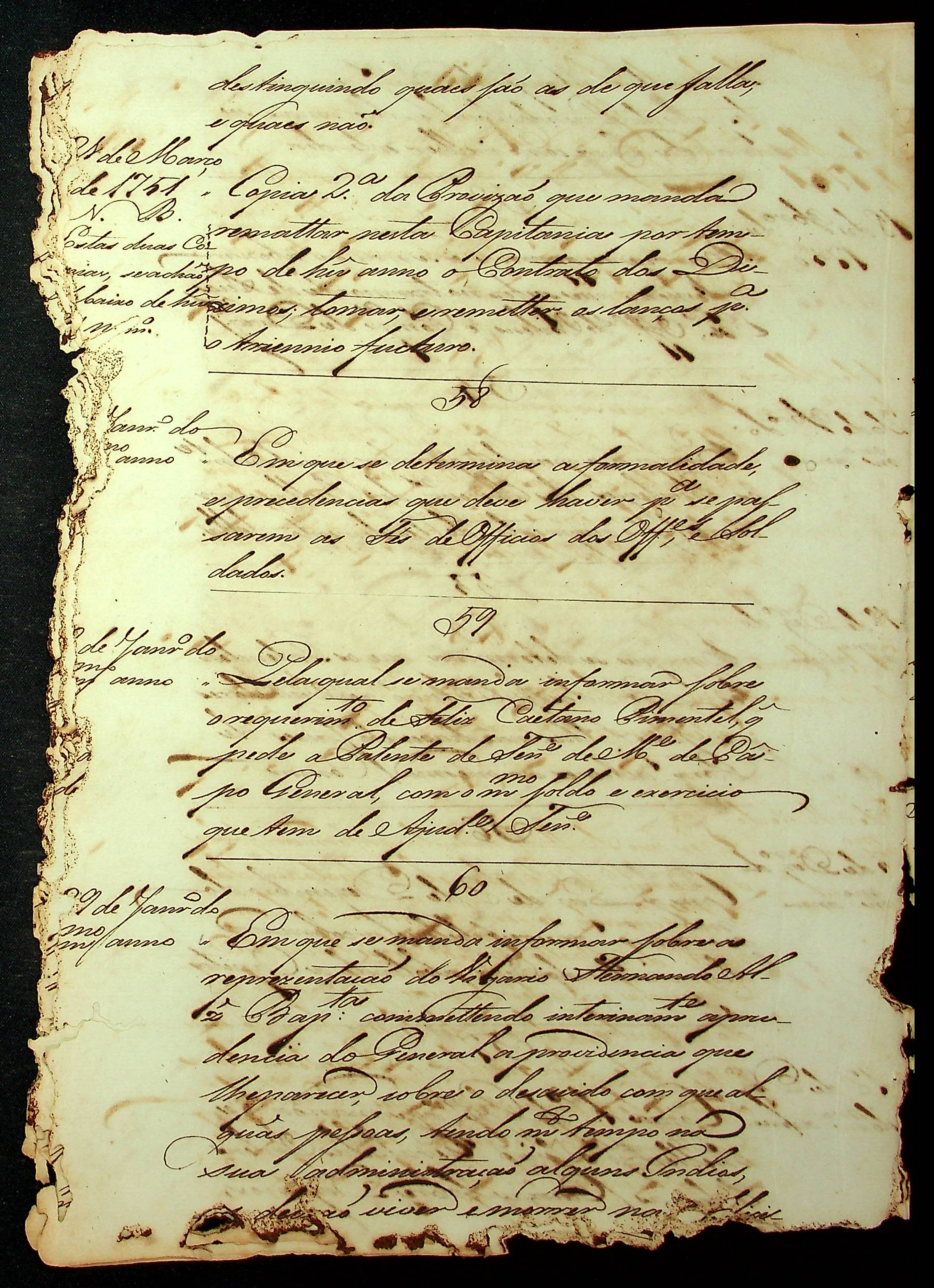 RELAÇÃO (Index) das provisões do Conselho Ultramarino que existem nesta Secretaria de Governo da Capitania de Mato Grosso, compreendidas de baixo de seus respectivos números.