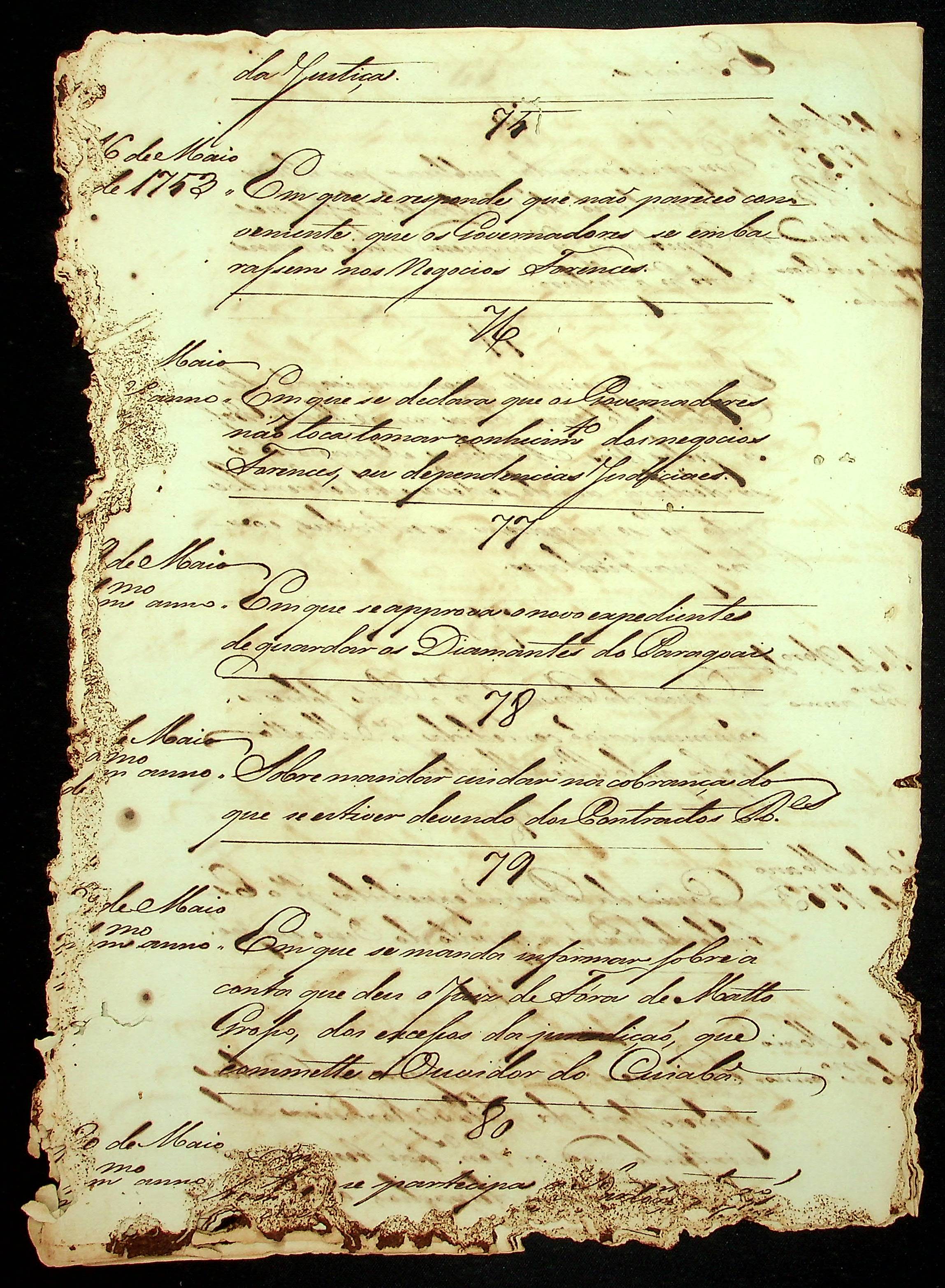 RELAÇÃO (Index) das provisões do Conselho Ultramarino que existem nesta Secretaria de Governo da Capitania de Mato Grosso, compreendidas de baixo de seus respectivos números.