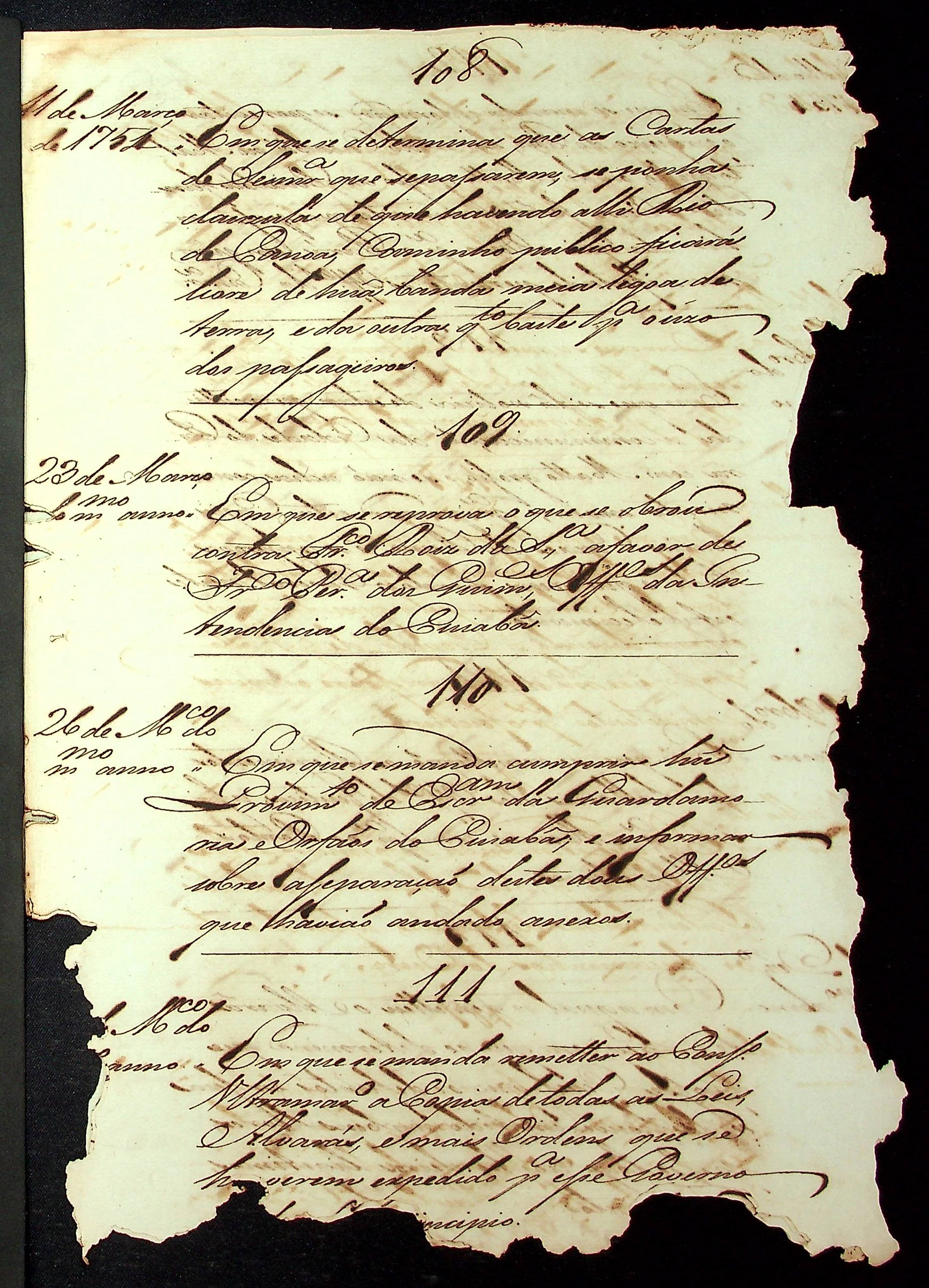 RELAÇÃO (Index) das provisões do Conselho Ultramarino que existem nesta Secretaria de Governo da Capitania de Mato Grosso, compreendidas de baixo de seus respectivos números.