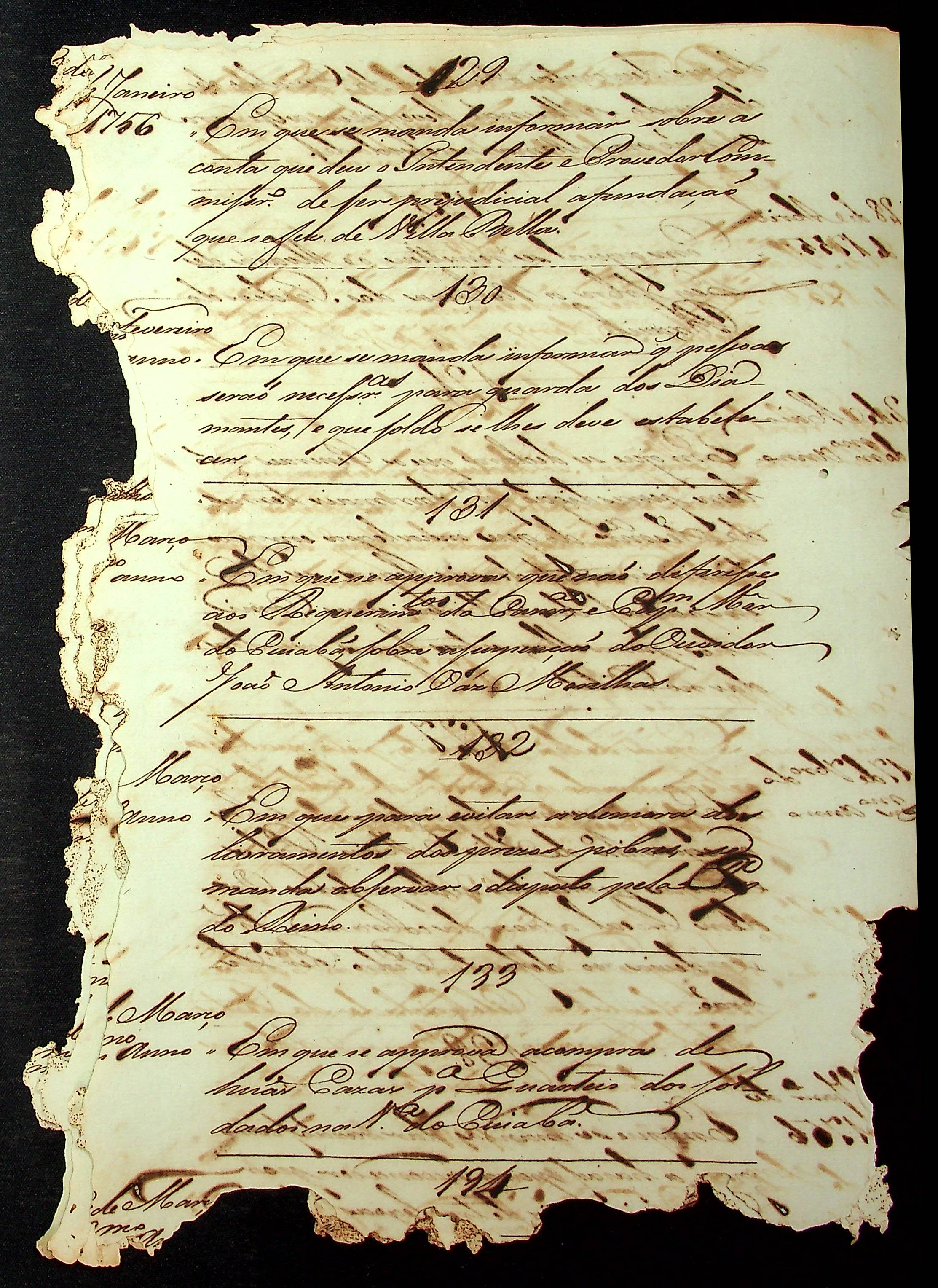 RELAÇÃO (Index) das provisões do Conselho Ultramarino que existem nesta Secretaria de Governo da Capitania de Mato Grosso, compreendidas de baixo de seus respectivos números.