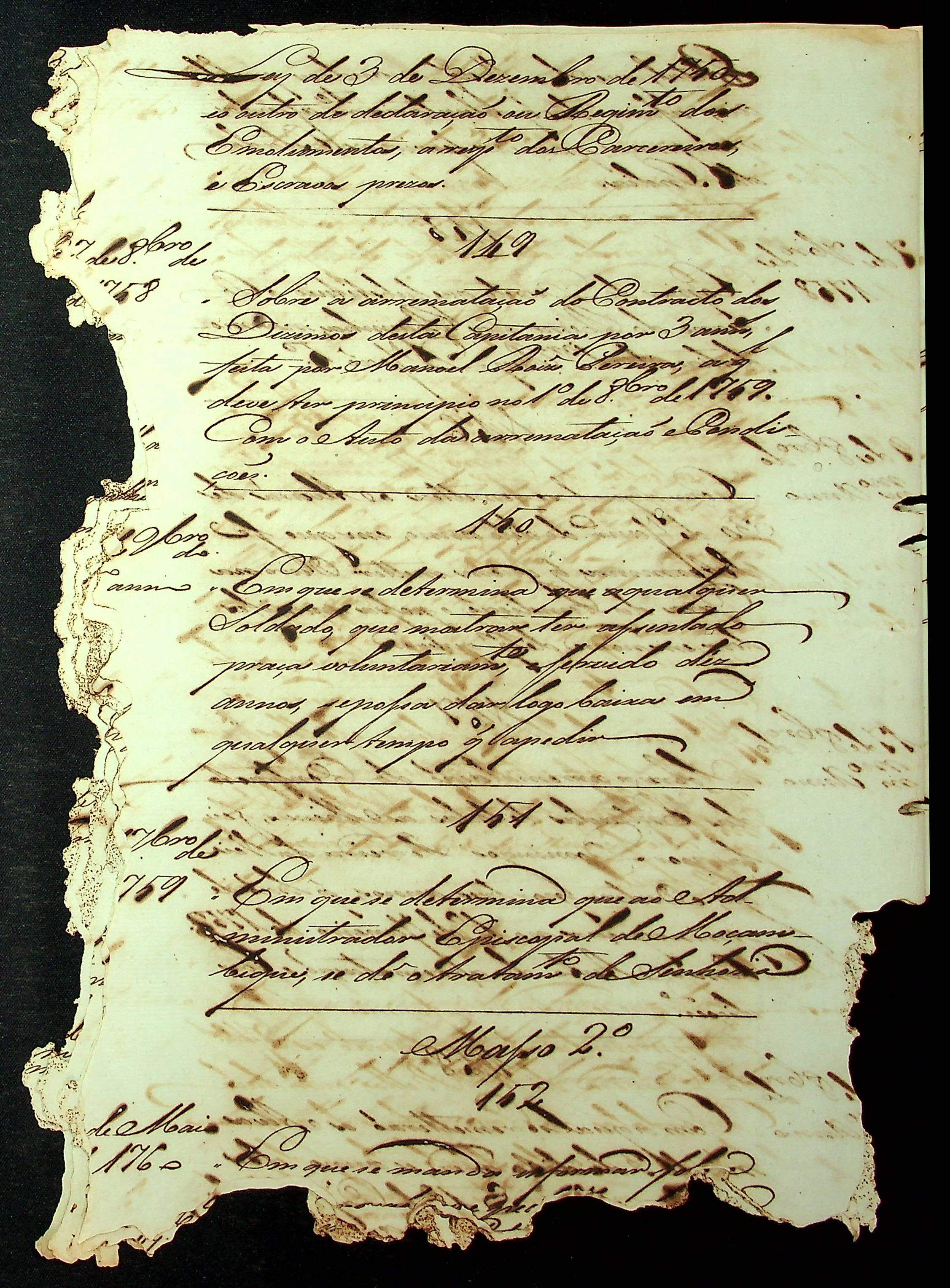 RELAÇÃO (Index) das provisões do Conselho Ultramarino que existem nesta Secretaria de Governo da Capitania de Mato Grosso, compreendidas de baixo de seus respectivos números.