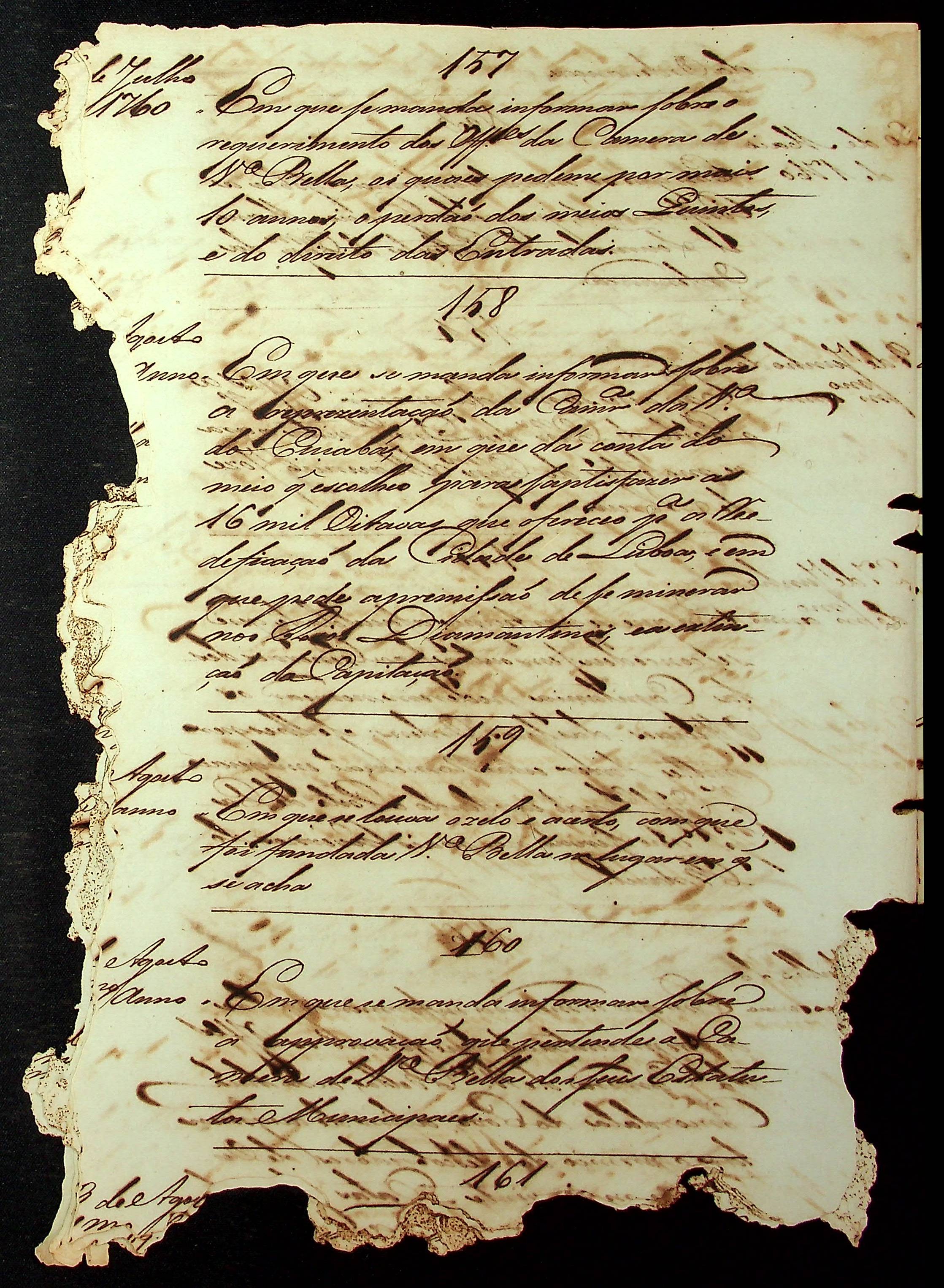 RELAÇÃO (Index) das provisões do Conselho Ultramarino que existem nesta Secretaria de Governo da Capitania de Mato Grosso, compreendidas de baixo de seus respectivos números.
