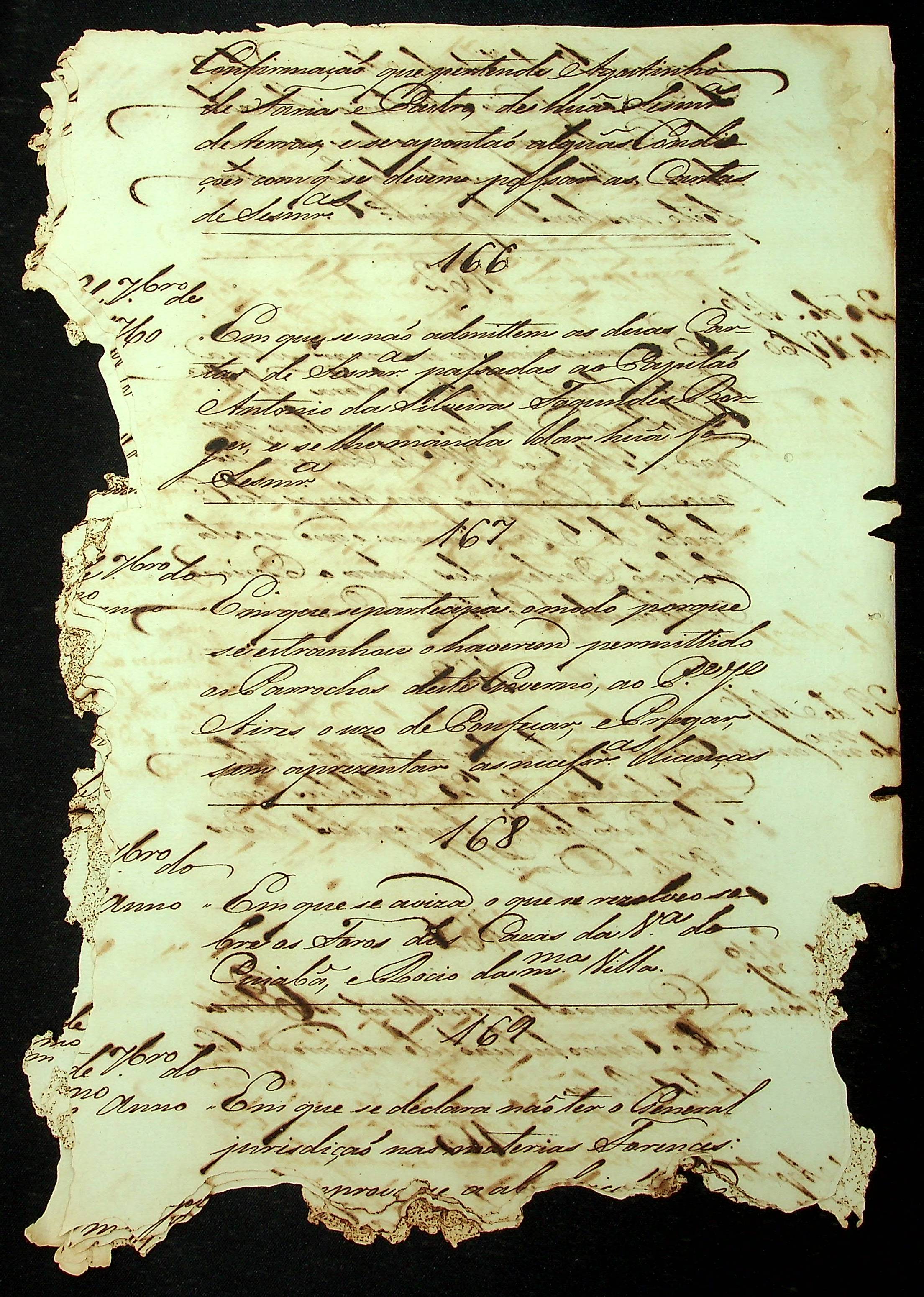 RELAÇÃO (Index) das provisões do Conselho Ultramarino que existem nesta Secretaria de Governo da Capitania de Mato Grosso, compreendidas de baixo de seus respectivos números.