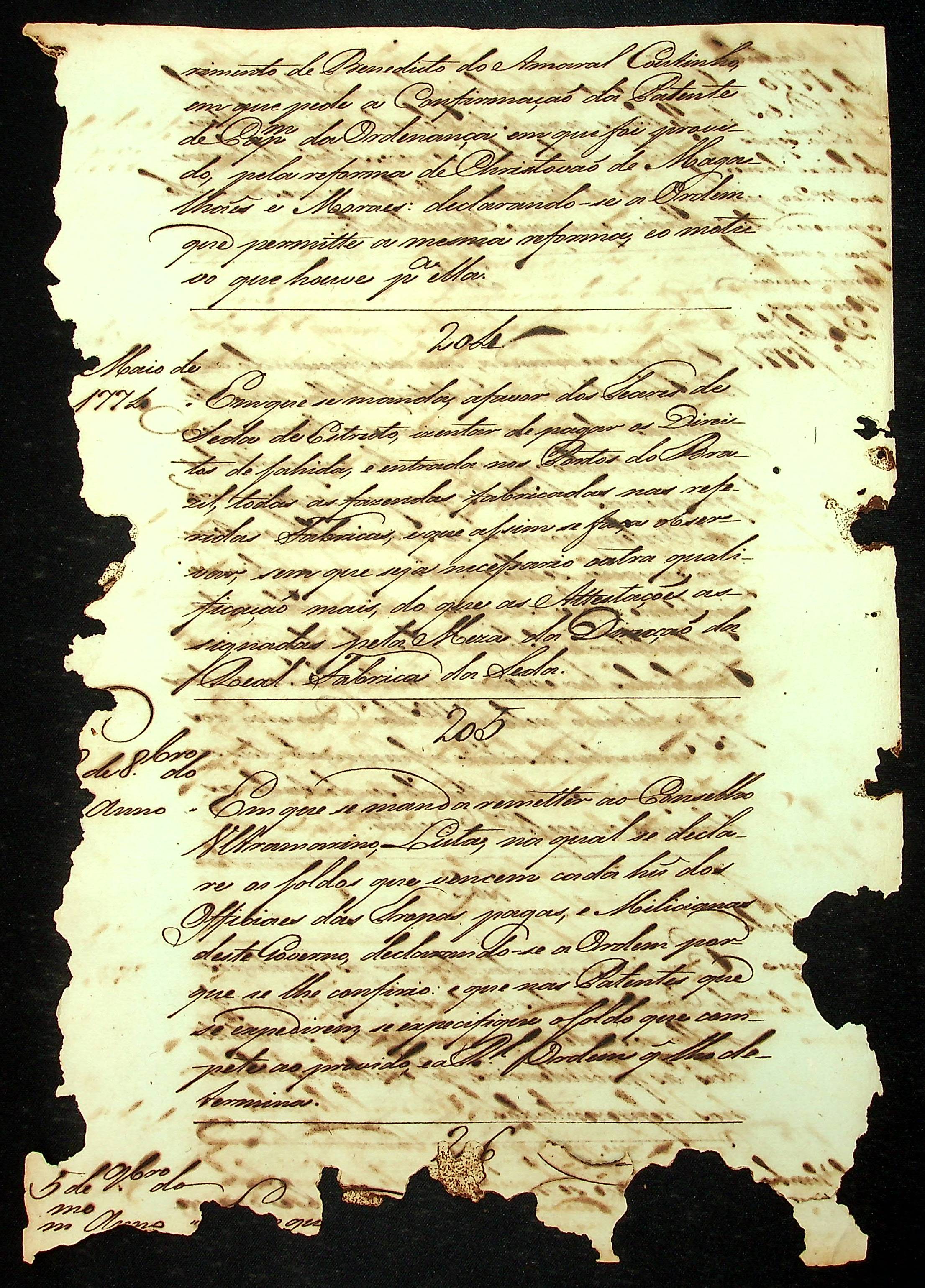 RELAÇÃO (Index) das provisões do Conselho Ultramarino que existem nesta Secretaria de Governo da Capitania de Mato Grosso, compreendidas de baixo de seus respectivos números.