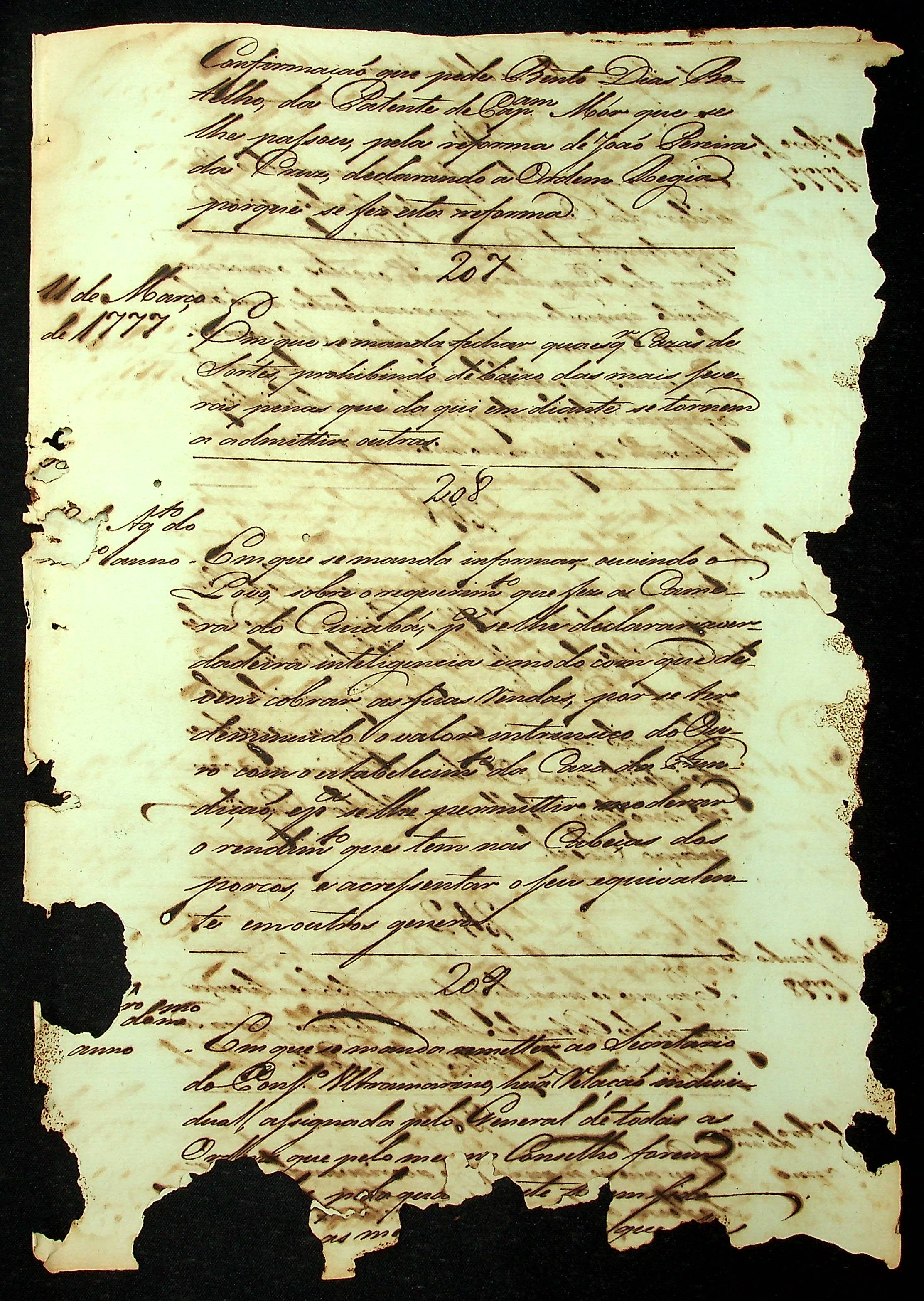 RELAÇÃO (Index) das provisões do Conselho Ultramarino que existem nesta Secretaria de Governo da Capitania de Mato Grosso, compreendidas de baixo de seus respectivos números.