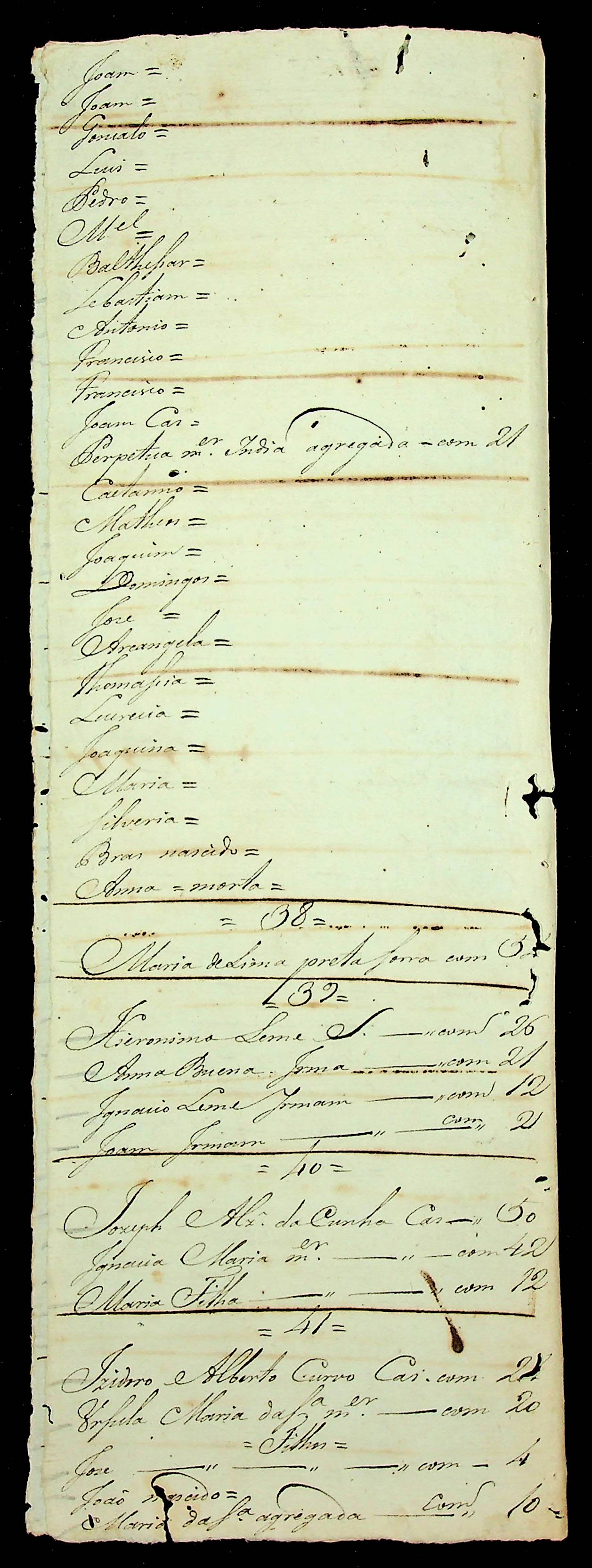 RELAÇÃO do Estado da população do Distrito do Rio Cuiabá Abaixo, de uma parte desde a derradeira povoação até o sítio e engenho do Capitão Ivan Godoi Moreira, passada pelo Tenente Francisco de Arruda e [Souza].
