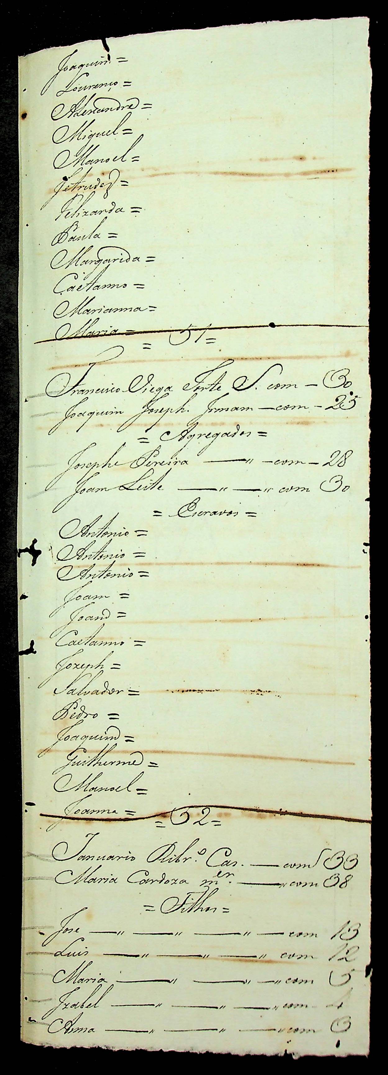 RELAÇÃO do Estado da população do Distrito do Rio Cuiabá Abaixo, de uma parte desde a derradeira povoação até o sítio e engenho do Capitão Ivan Godoi Moreira, passada pelo Tenente Francisco de Arruda e [Souza].