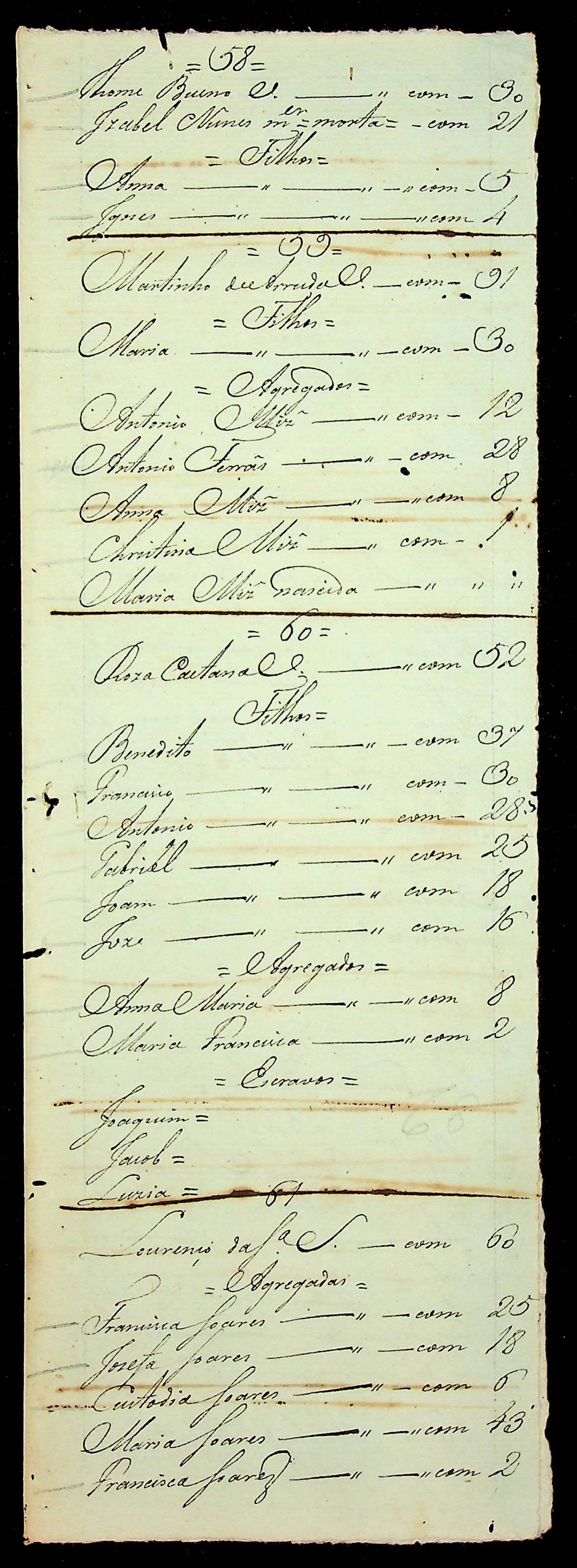 RELAÇÃO do Estado da população do Distrito do Rio Cuiabá Abaixo, de uma parte desde a derradeira povoação até o sítio e engenho do Capitão Ivan Godoi Moreira, passada pelo Tenente Francisco de Arruda e [Souza].