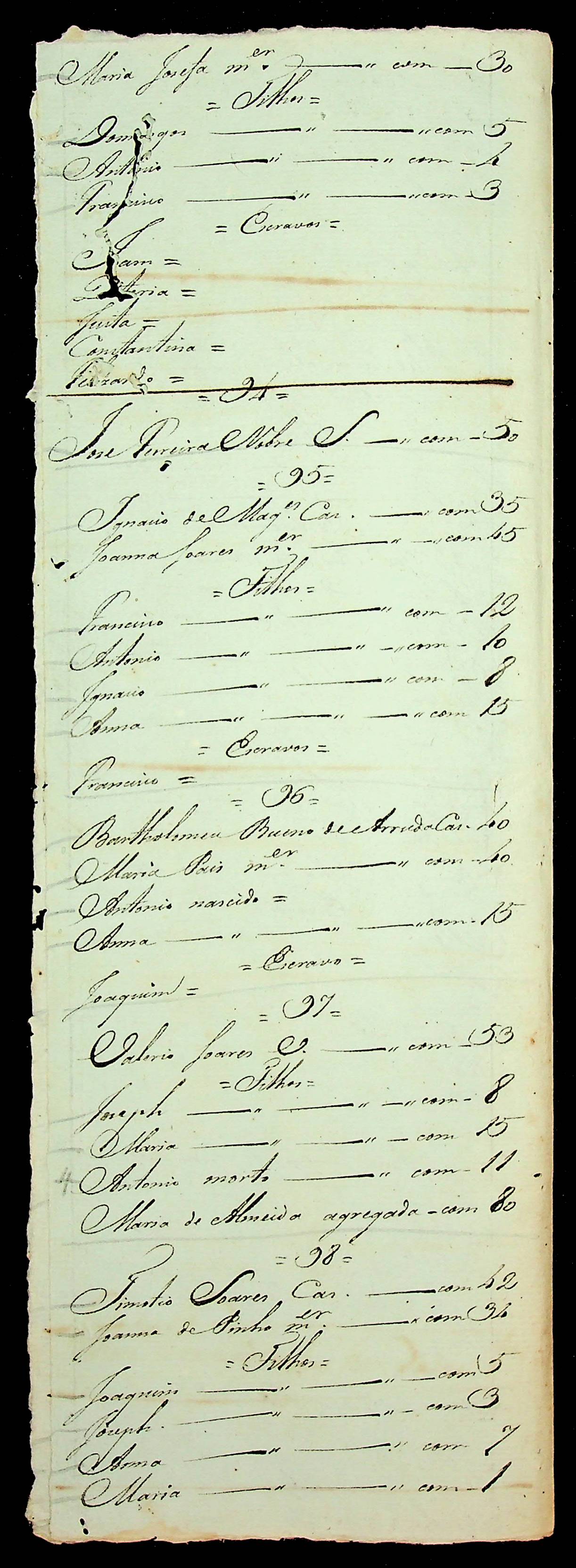 RELAÇÃO do Estado da população do Distrito do Rio Cuiabá Abaixo, de uma parte desde a derradeira povoação até o sítio e engenho do Capitão Ivan Godoi Moreira, passada pelo Tenente Francisco de Arruda e [Souza].