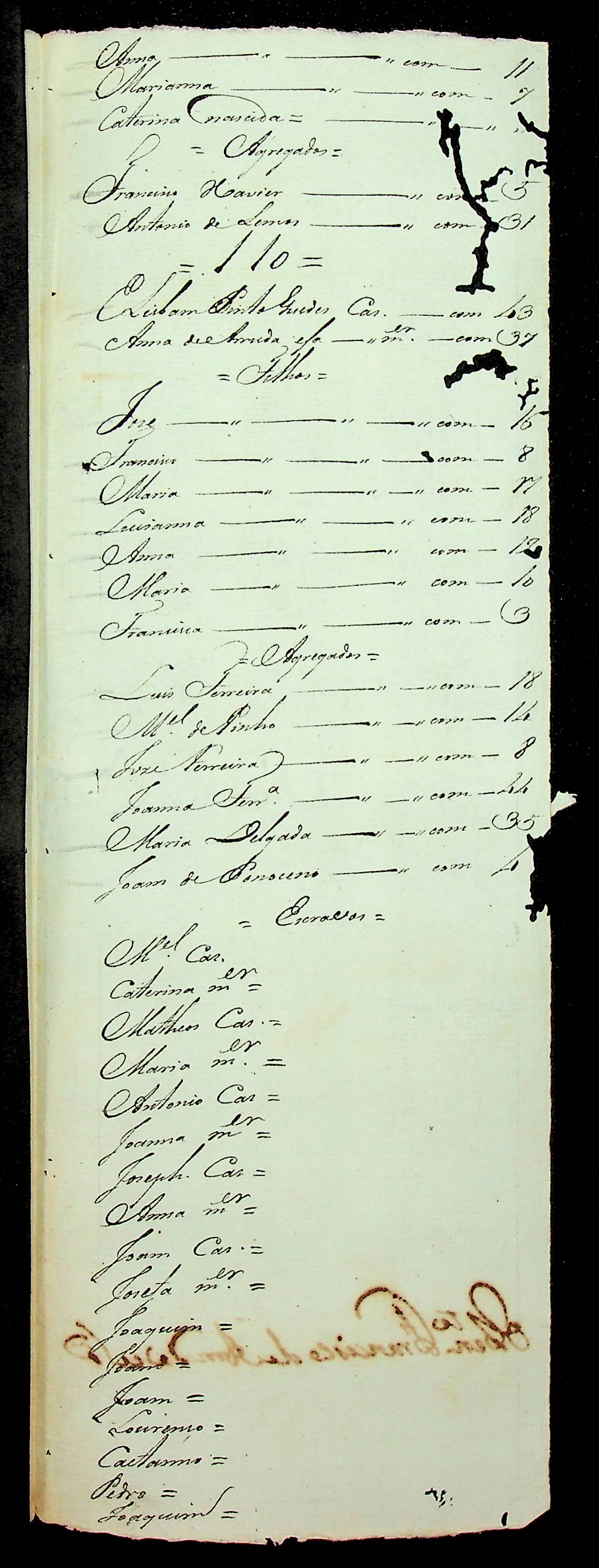 RELAÇÃO do Estado da população do Distrito do Rio Cuiabá Abaixo, de uma parte desde a derradeira povoação até o sítio e engenho do Capitão Ivan Godoi Moreira, passada pelo Tenente Francisco de Arruda e [Souza].