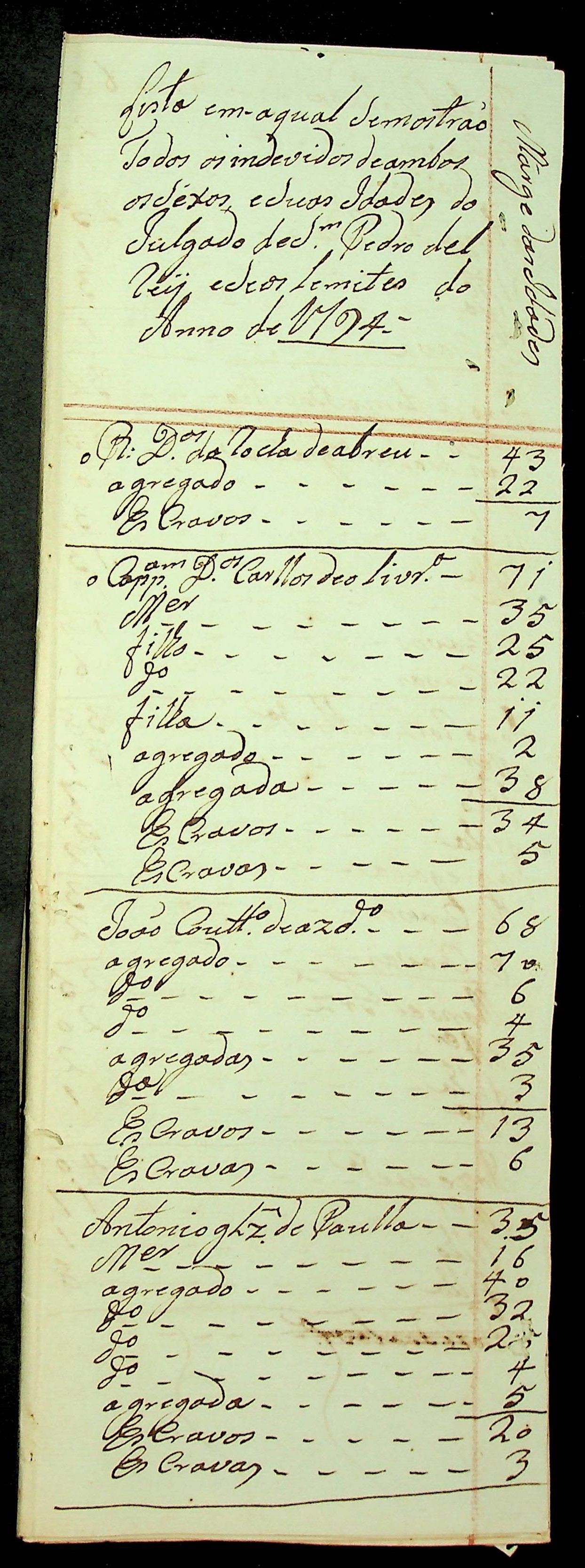 RELAÇÃO do estado da população do julgado de São Pedro del´Rei e mais estabelecimentos até Vila Maria, passada por Bernardo da Silva Santos.