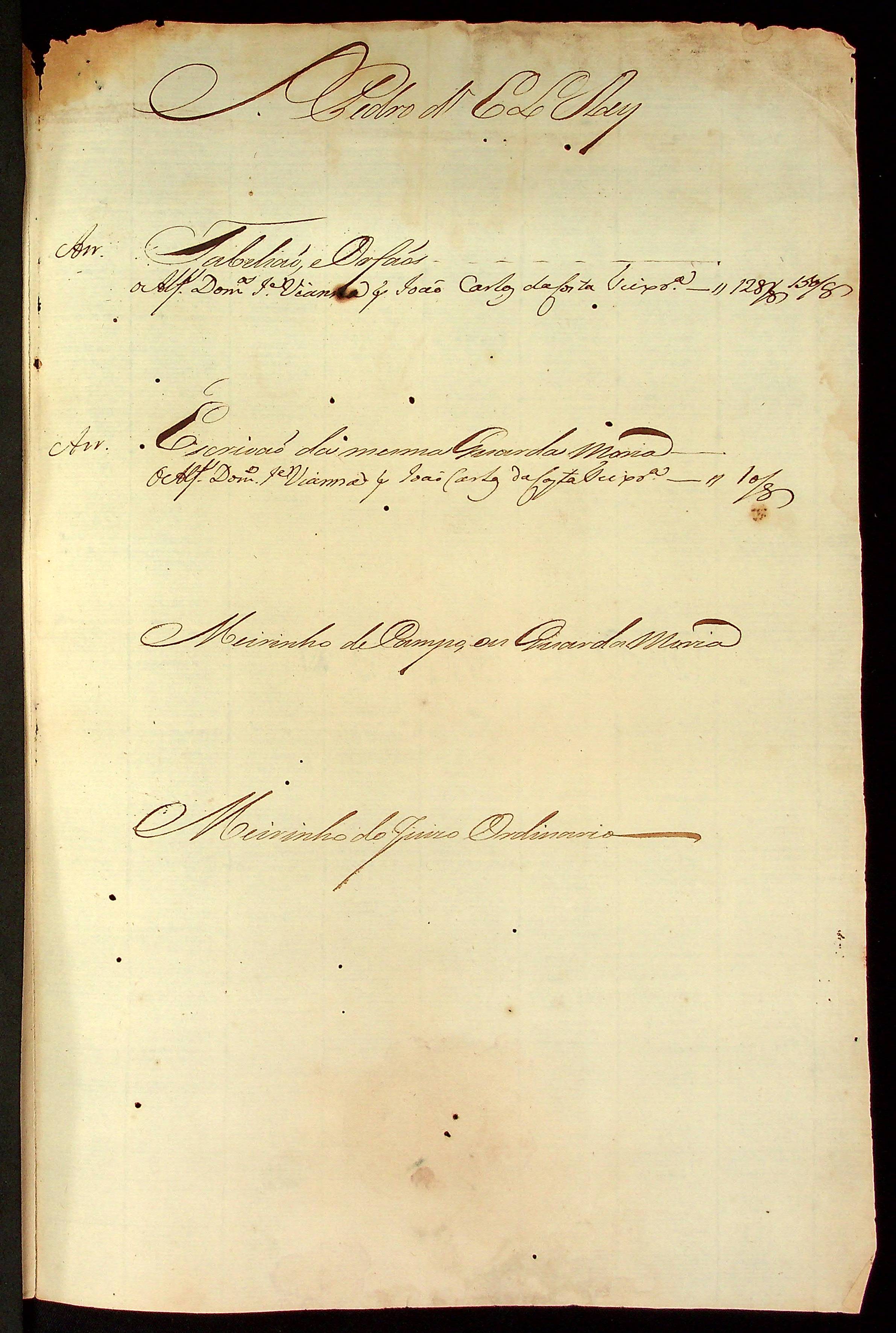 RELAÇÃO de arrematação dos ofícios de justiça da Vila do Cuiabá e seu distrito, em que se compreende, também as do novo Julgado de São Pedro D´El Rei, feita na Secretaria de Governo, no ano de 1799 para o 1800.