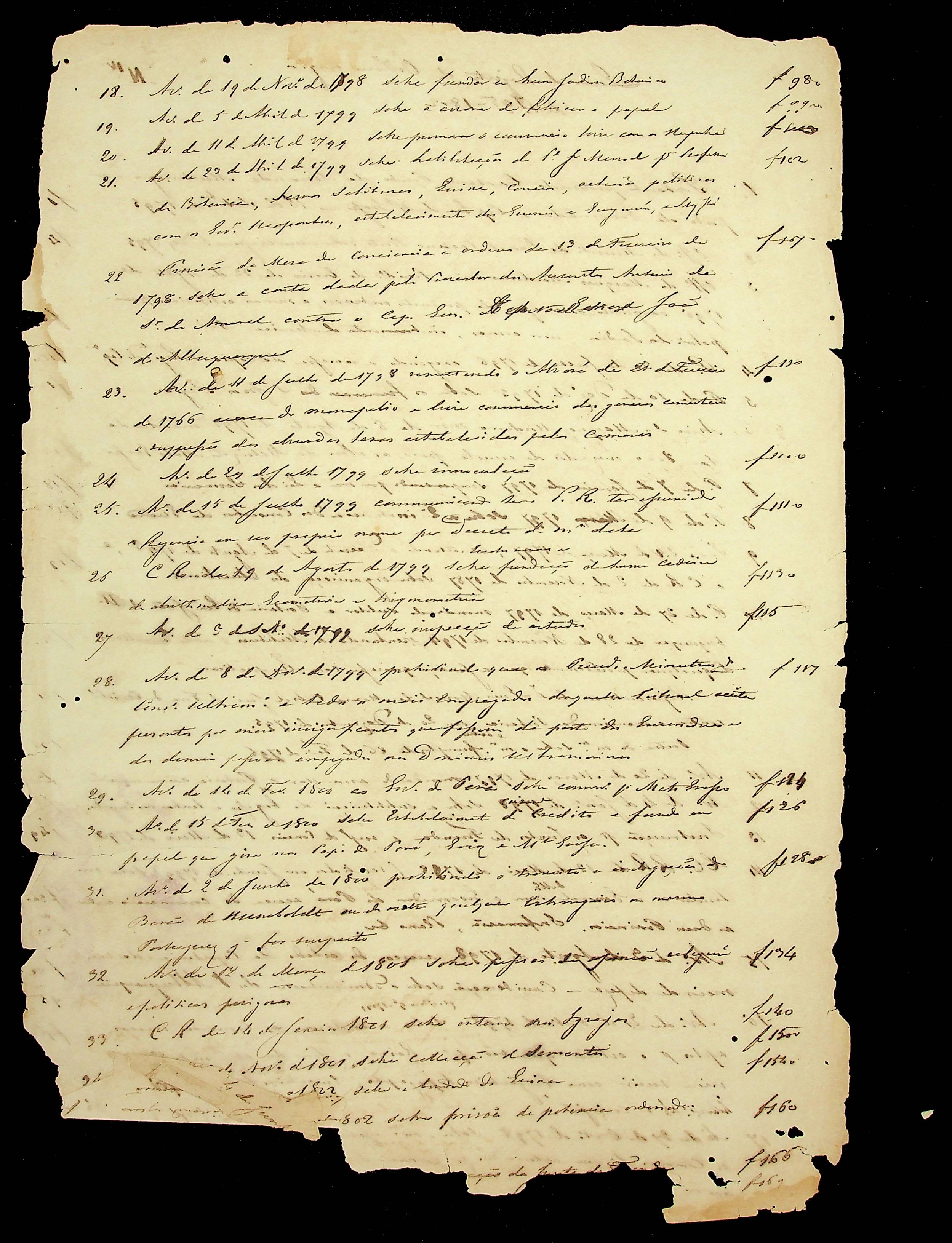 RELAÇÃO (Cópia) do índice do livro de registro de Ordem Régia.