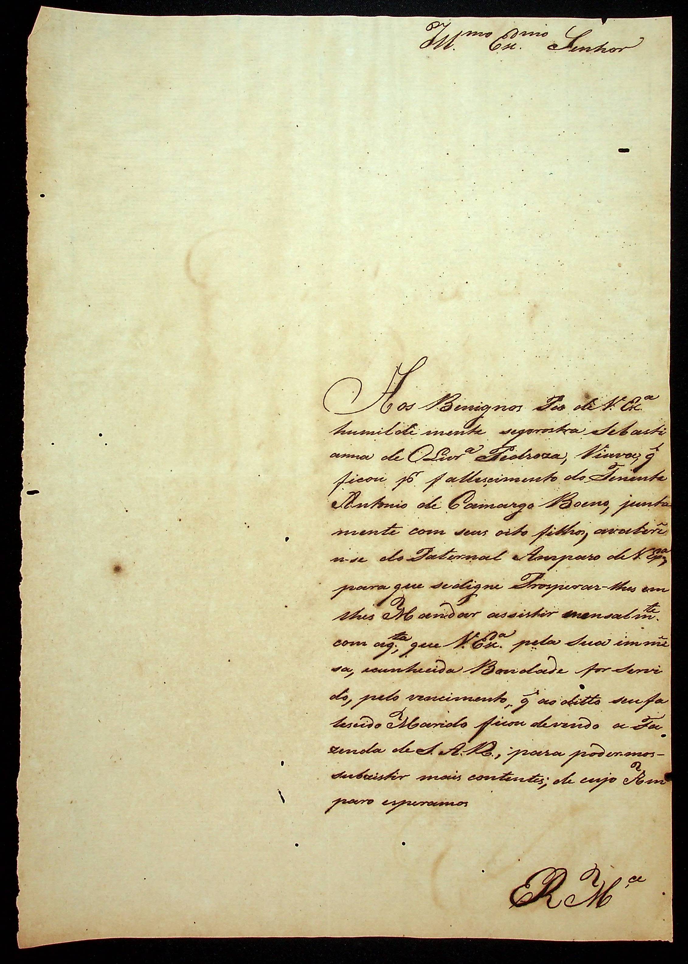 REQUERIMENTO da Viúva do Tenente Antônio de Camargo Bueno, Sebastiana de Oliveira Pedrosa ao Governador e Capitão-General da Capitania de Mato Grosso [...].