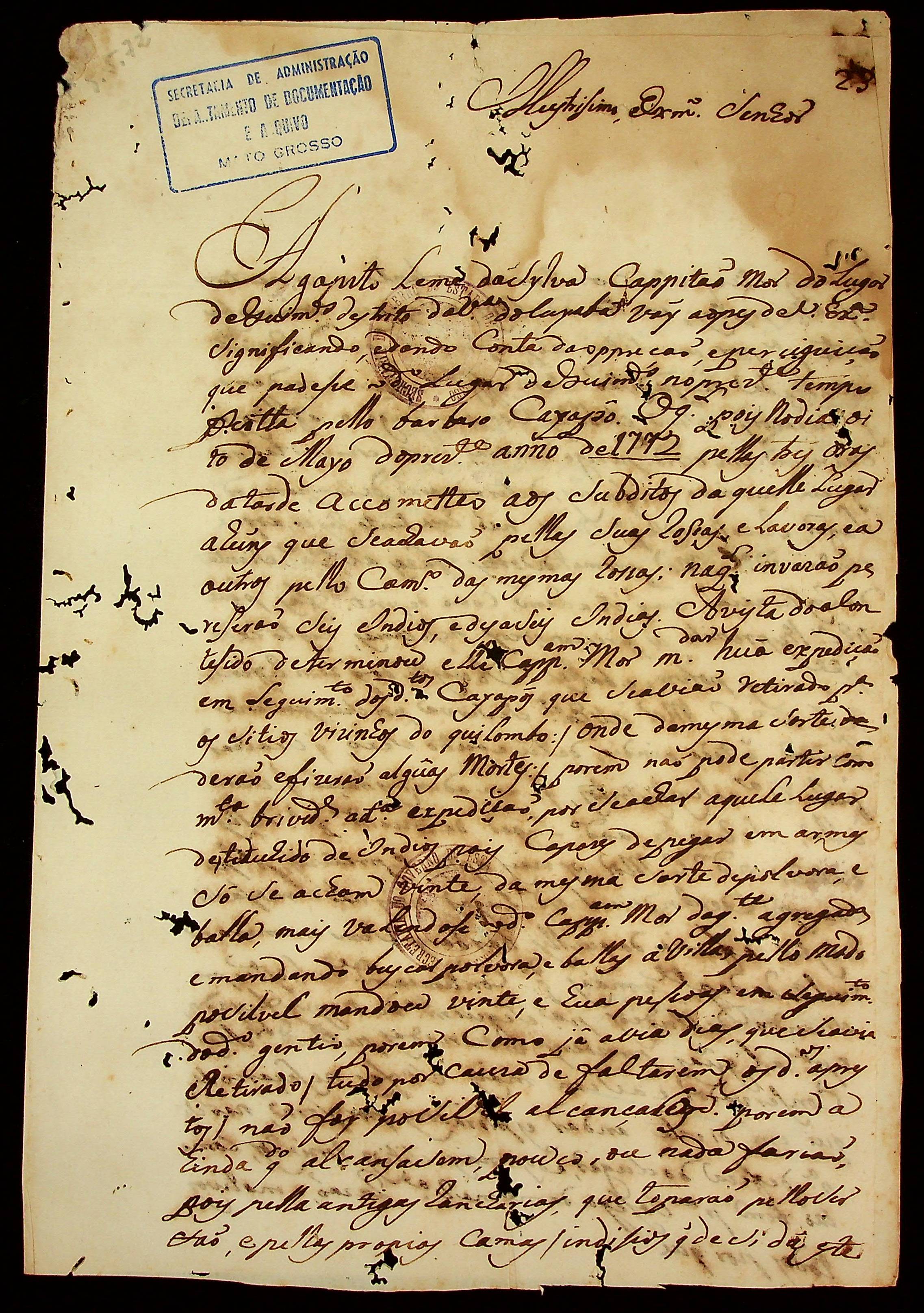 REQUERIMENTO do Capitão Mor do Lugar de Guimarães do Distrito da Vila do Cuiabá, Agapito Leme da Silva, ao [Governador e Capitão General da Capitania de Mato Grosso Luiz Pinto de Souza Coutinho].