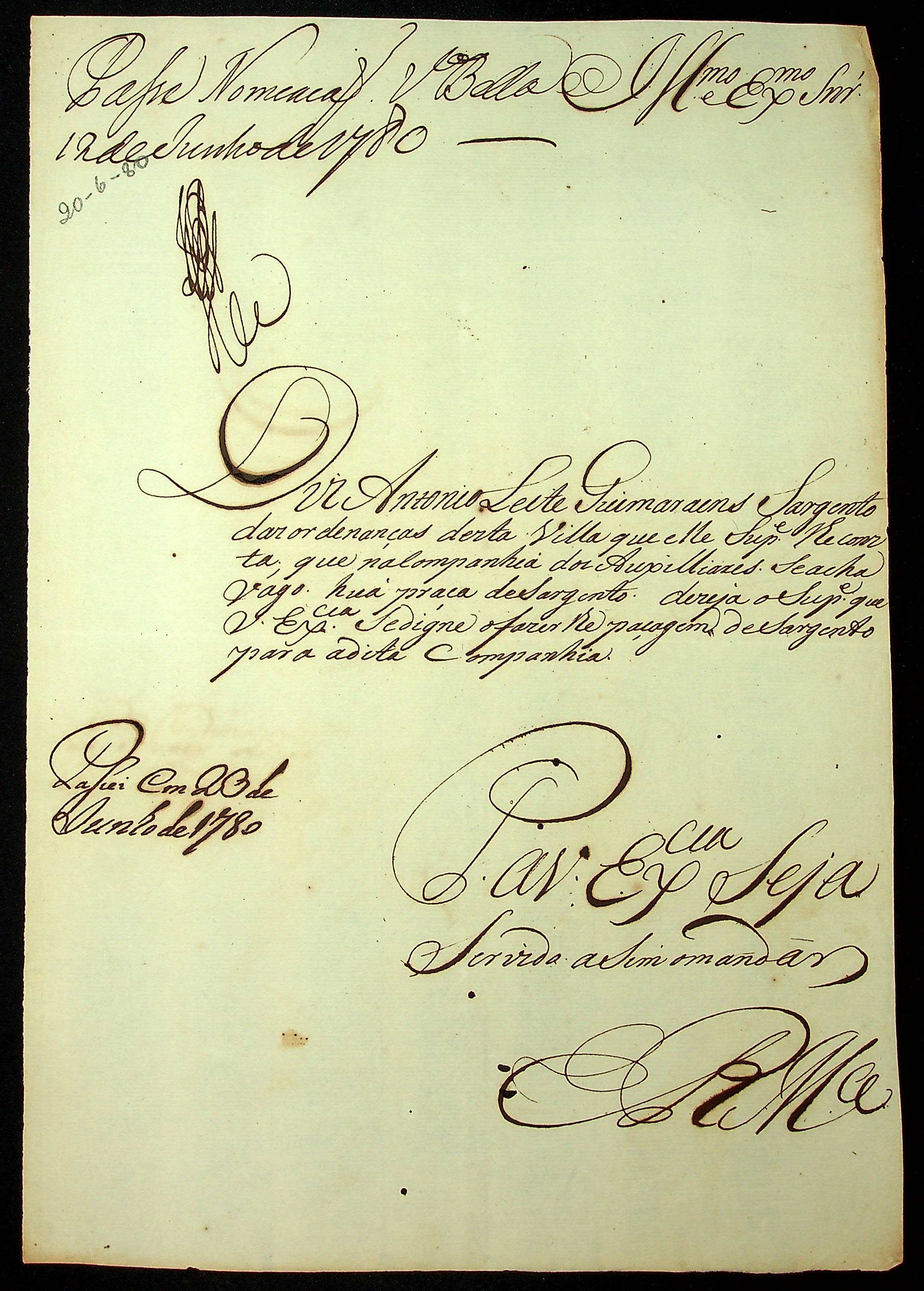 REQUERIMENTO do Sargento de Ordenanças Antônio Leite Guimarães ao cargo de Sargento da Companhia de Auxiliares.