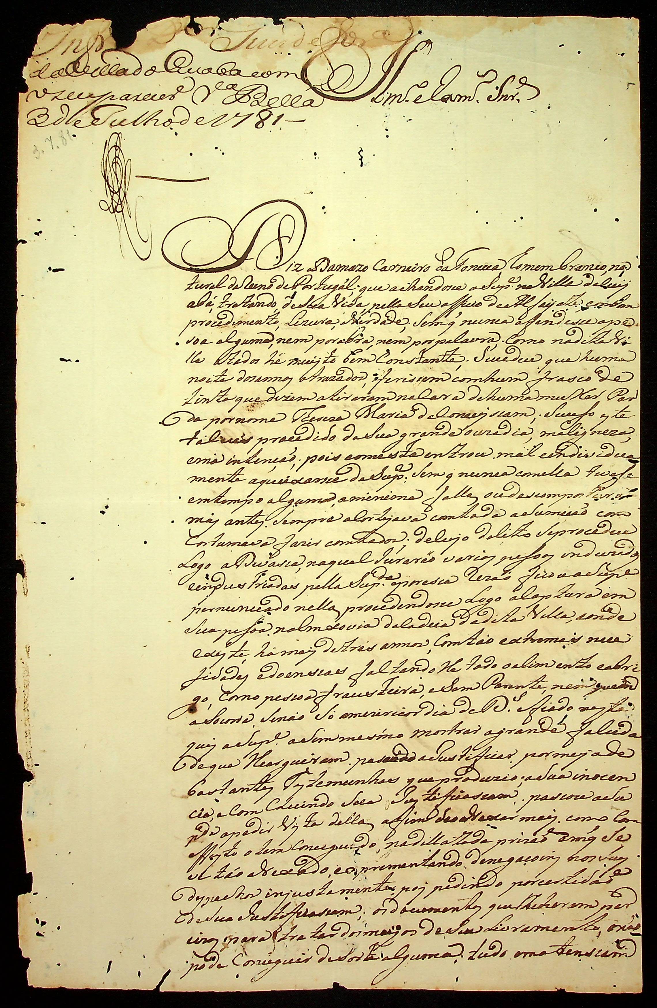 REQUERIMENTO de Damazo Carneiro da Fonseca ao [Governador e Capitão-General da Capitania de Mato Grosso Luiz de Albuquerque de Melo Pereira e Cáceres].