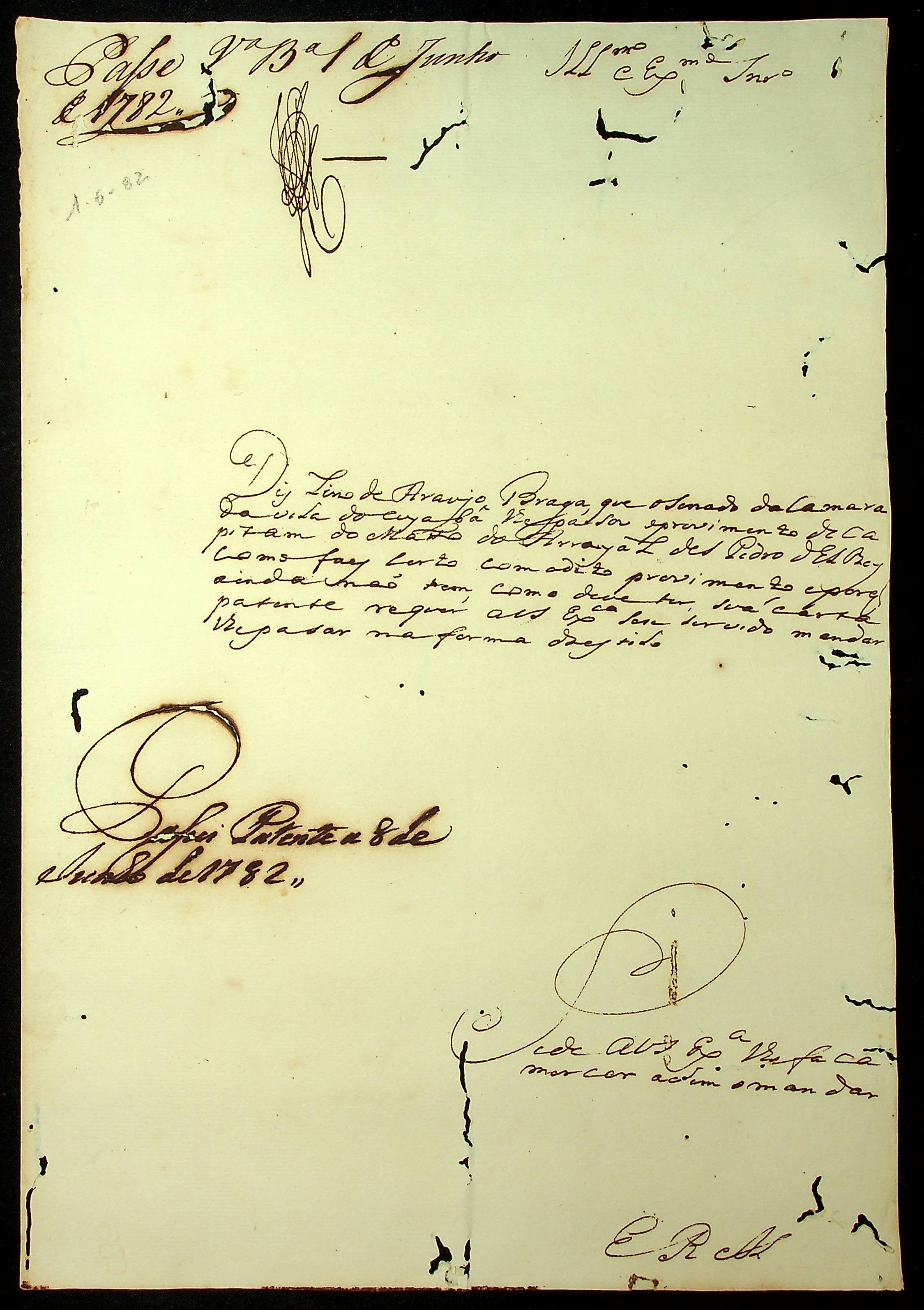 REQUERIMENTO de Lino de Araújo Braga ao [Governador e Capitão-General da Capitania de Mato Grosso Luiz de Albuquerque de Melo Pereira e Cáceres].
