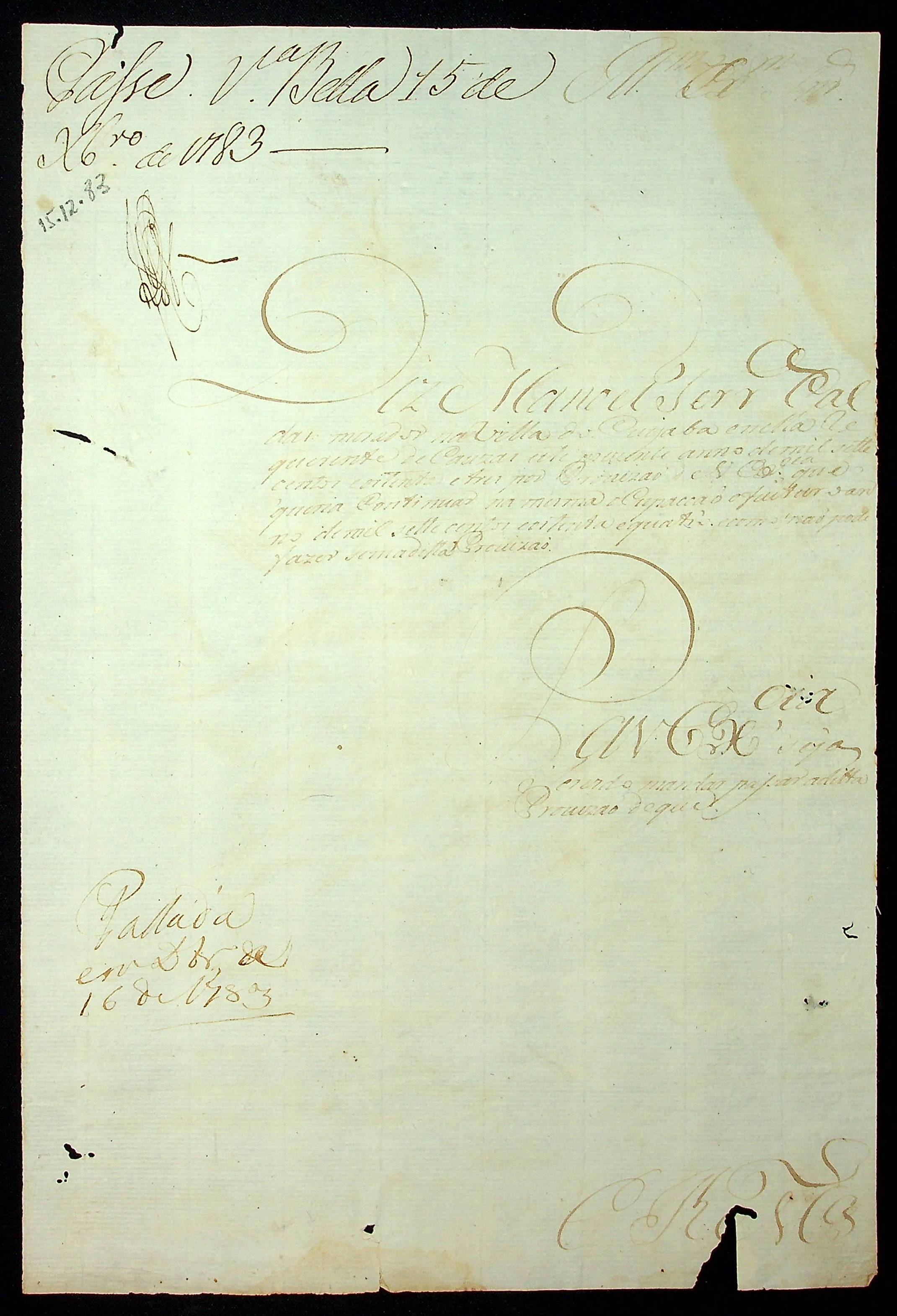 REQUERIMENTO de Manuel Ferreira Caldas ao [Governador e Capitão-General da Capitania de Mato Grosso Luiz de Albuquerque de Melo Pereira e Cáceres] a passar provimento ao ofício de Requerente de Causas da Vila do Cuiabá.