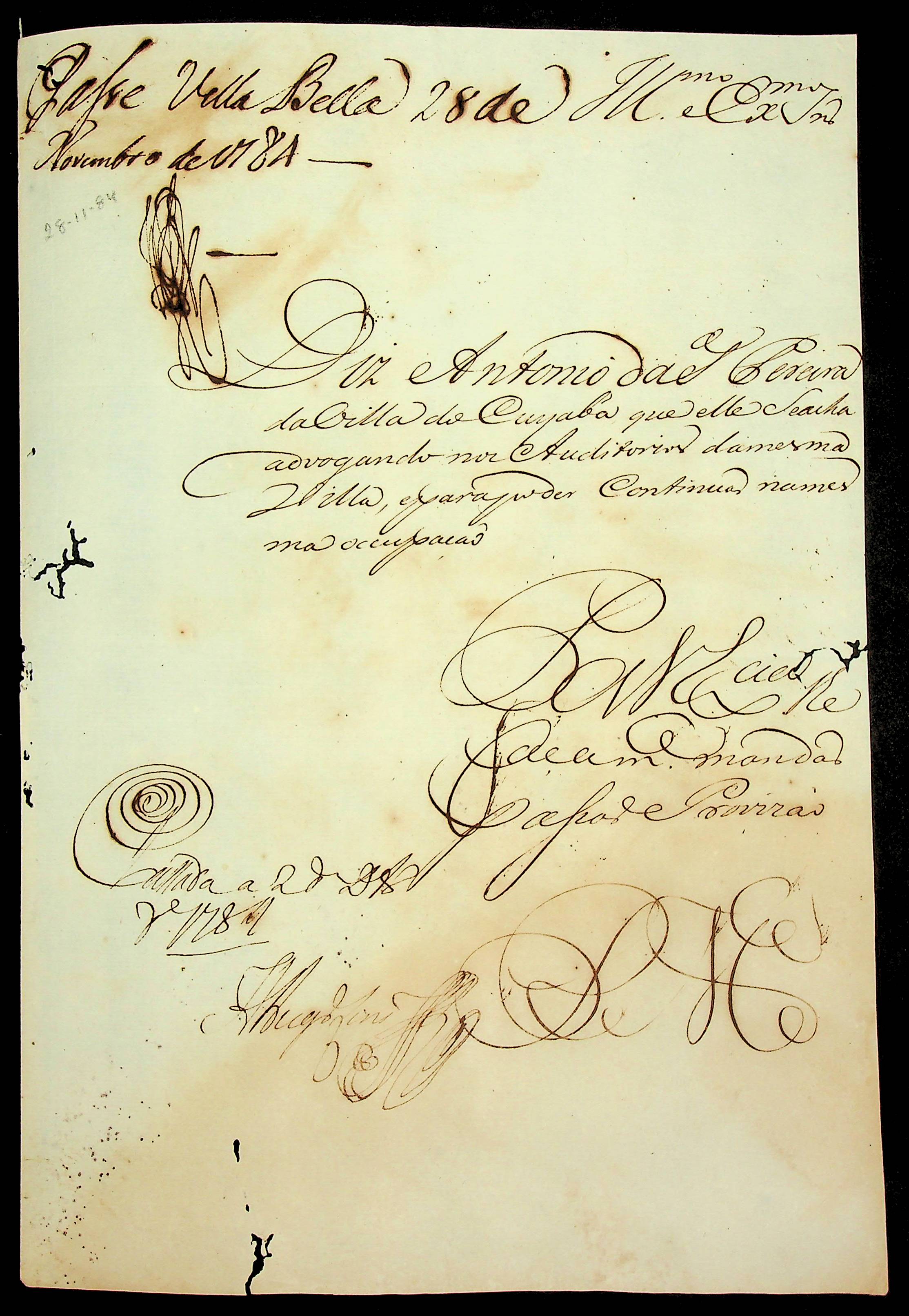 REQUERIMENTO de Antônio da Silva Pereira ao [Governador e Capitão-General da Capitania de Mato Grosso Luiz de Albuquerque de Melo Pereira e Cáceres] para advogar nos auditórios da Vila de Cuiabá.