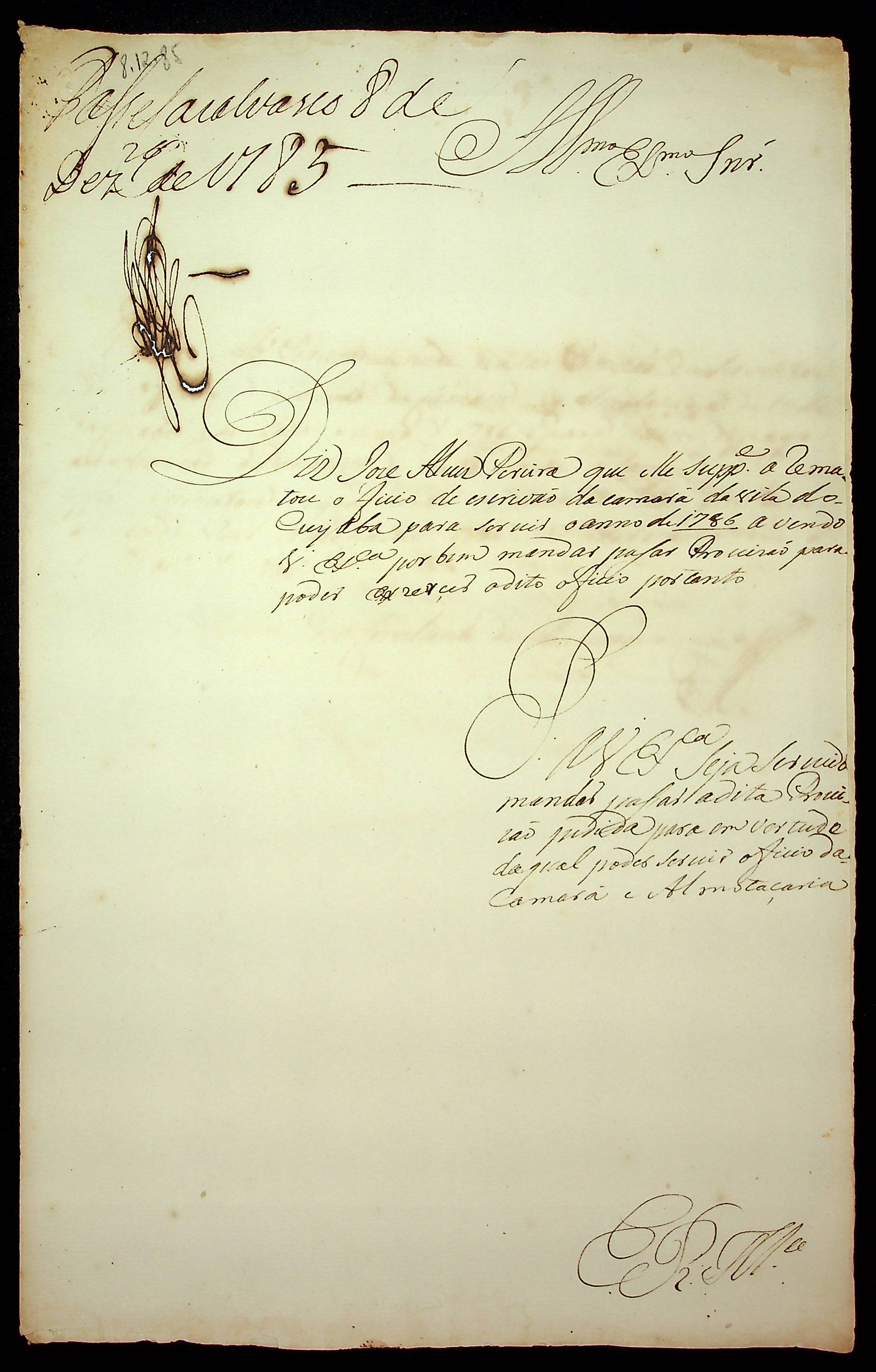 REQUERIMENTO de José Alves Pereira ao [Governador e Capitão-General da Capitania de Mato Grosso Luiz de Albuquerque de Melo Pereira e Cáceres], para exercer o ofício de escrivão da Câmara da Vila do Cuiabá.