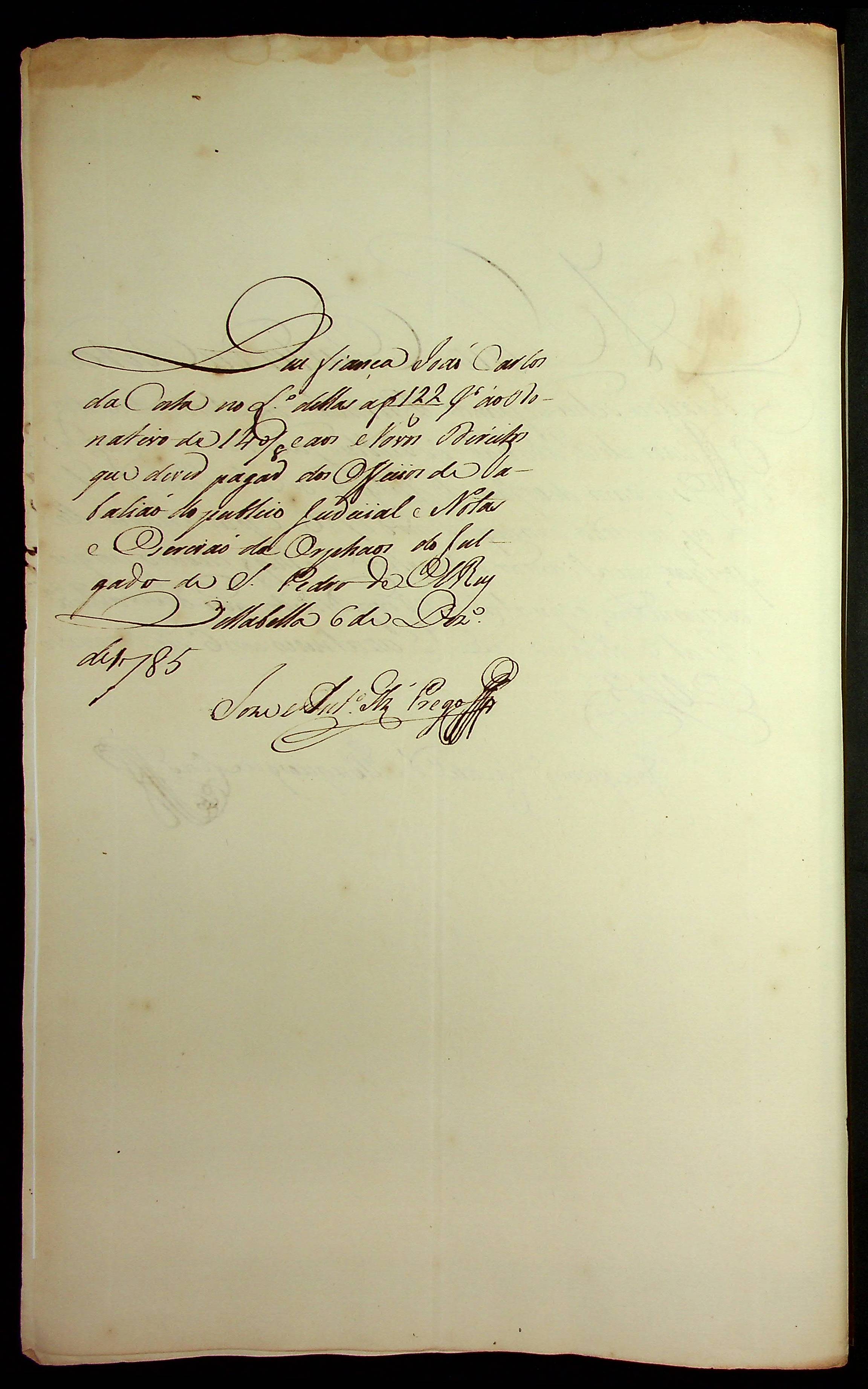 REQUERIMENTO de João Carlos da Costa Teixeira ao [Governador e Capitão-General da Capitania de Mato Grosso Luiz de Albuquerque de Melo Pereira e Cáceres], para exercer o ofício de tabelião dos Órfãos do Arraial de São Pedro Del Rey.