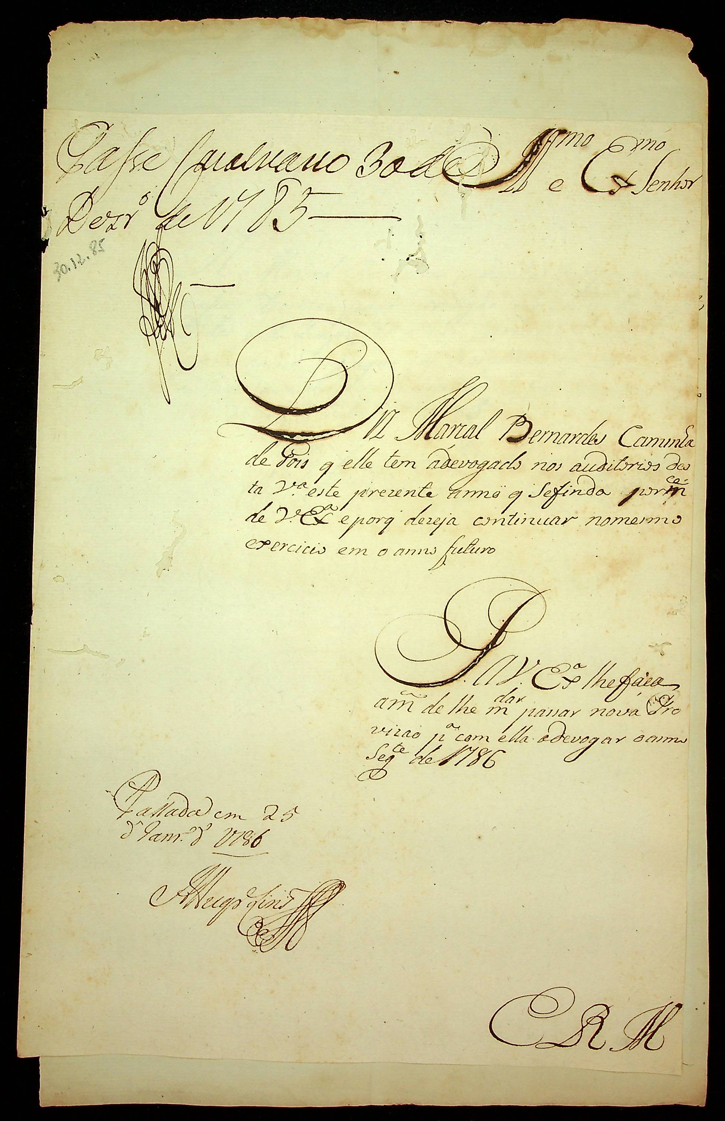 REQUERIMENTO de Marçal Bernardes Caminha Góes ao [Governador e Capitão-General da Capitania de Mato Grosso Luiz de Albuquerque de Melo Pereira e Cáceres], pela renovação da sua provisão com advogado dos auditórios de [Vila Bela].