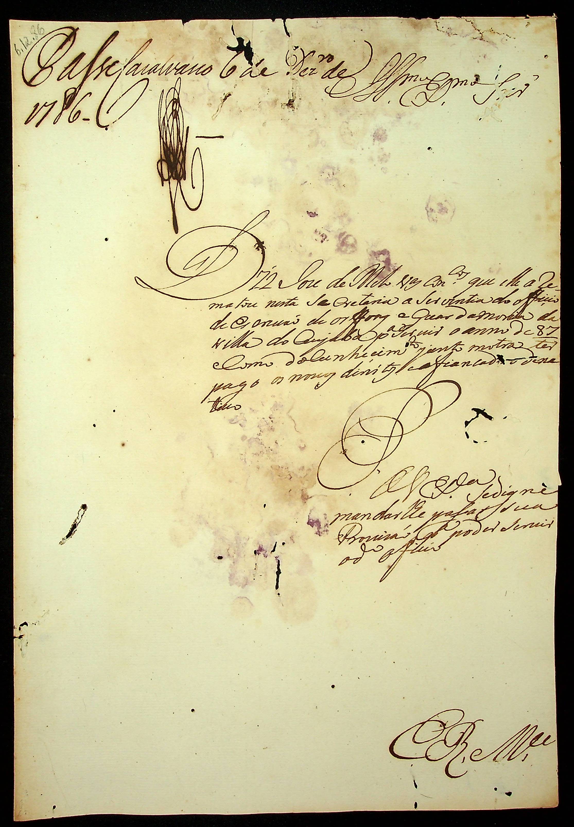 REQUERIMENTO de José de Melo Vasconcellos ao [Governador e Capitão-General da Capitania de Mato Grosso Luiz de Albuquerque de Melo Pereira e Cáceres], para exercer o ofício de escrivão dos Órfãos e Guardamoria da Vila do Cuiabá.