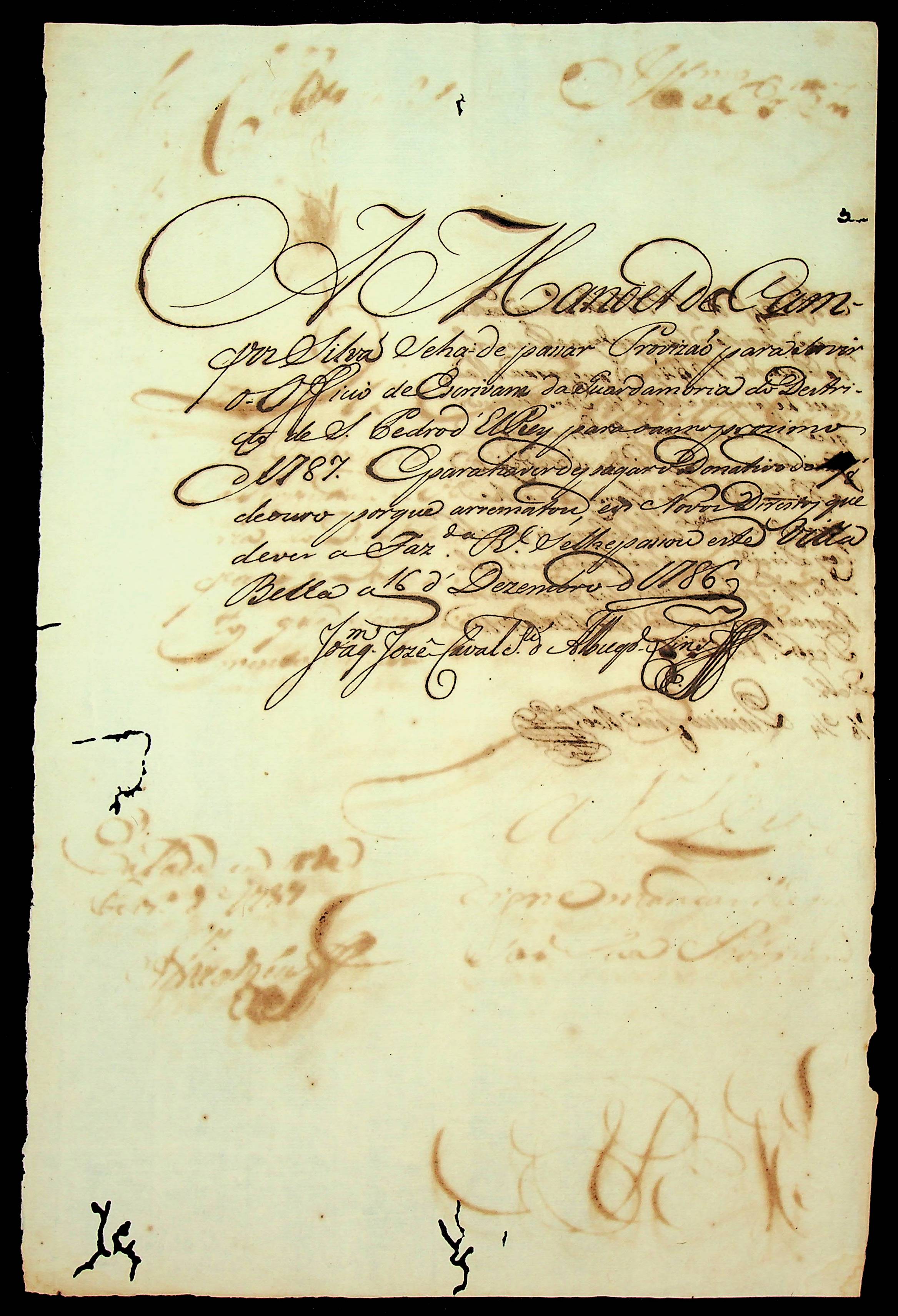 REQUERIMENTO de Manoel de Campos Silva ao [Governador e Capitão-General da Capitania de Mato Grosso Luiz de Albuquerque de Melo Pereira e Cáceres], pelo ofício de escrivão da Guardamoria do distrito de São Pedro Del Rei.