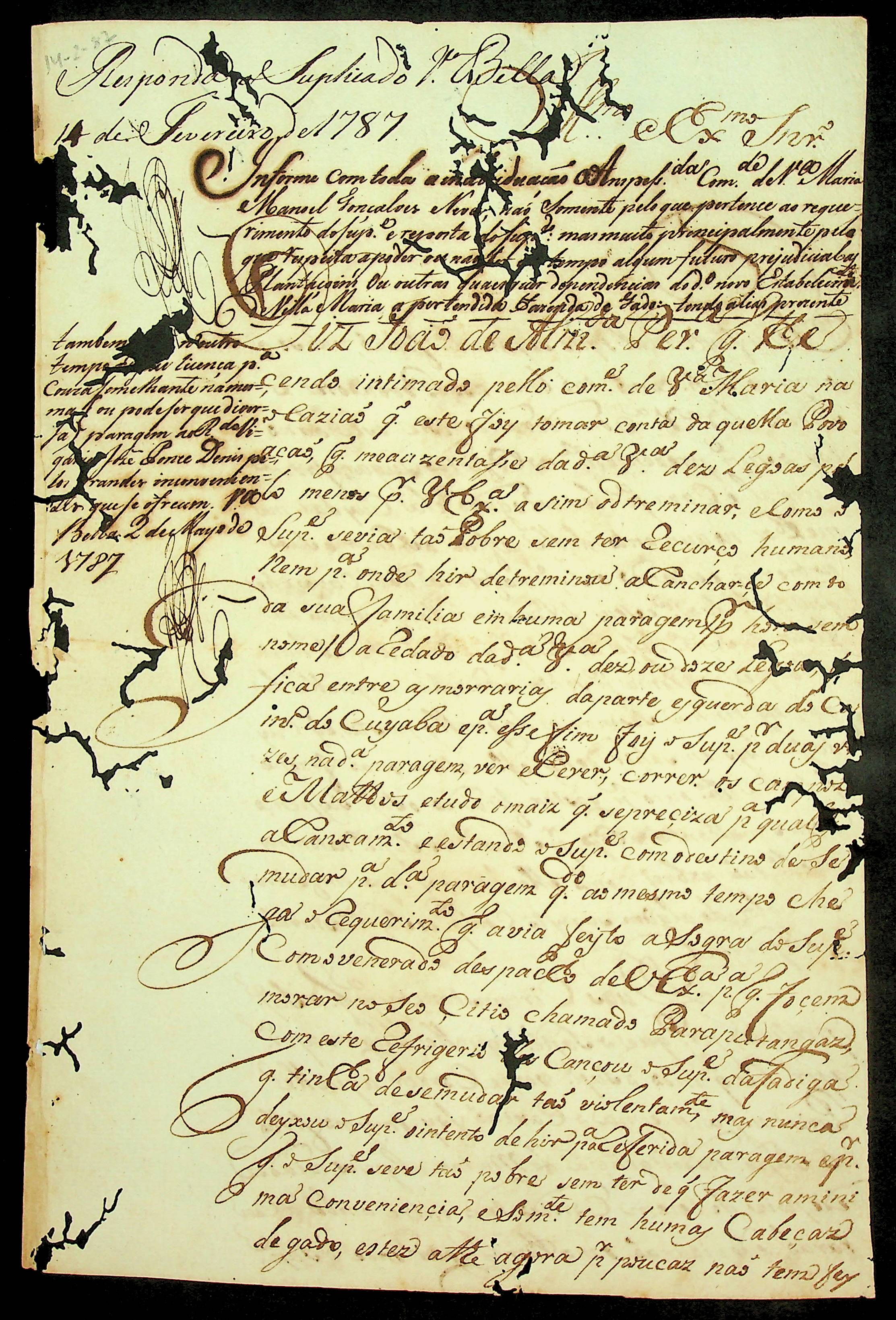 REQUERIMENTO de João de Almeida Pereira ao [Governador e Capitão-General da Capitania de Mato Grosso Luiz de Albuquerque de Melo Pereira e Cáceres].
