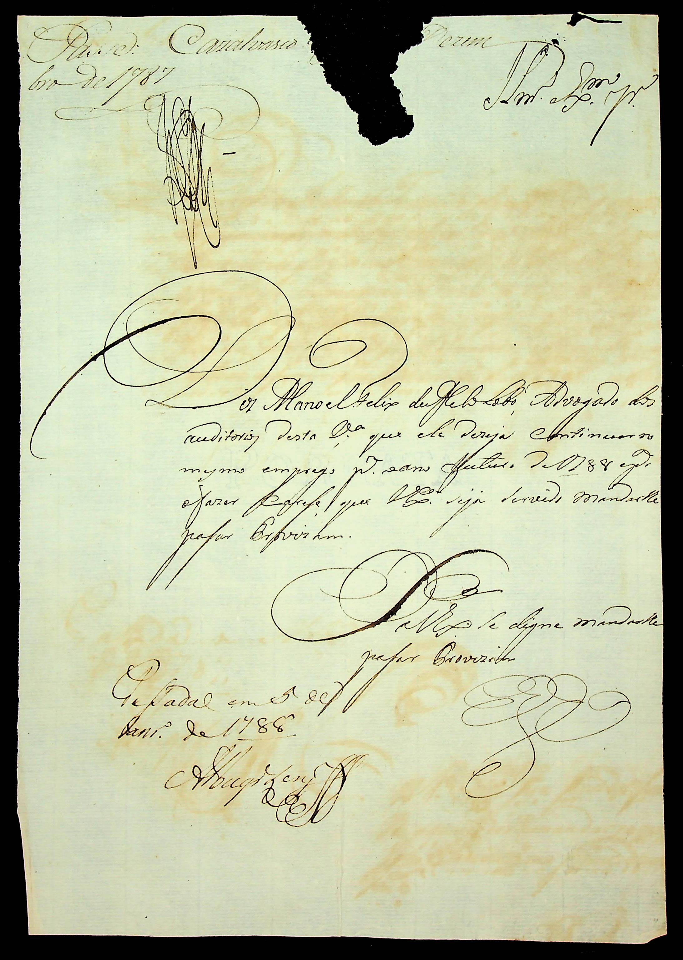 REQUERIMENTO de Manoel Felix de Melo Lobo ao [Governador e Capitão-General da Capitania de Mato Grosso Luiz de Albuquerque de Melo Pereira e Cáceres] para advogar nos auditórios.