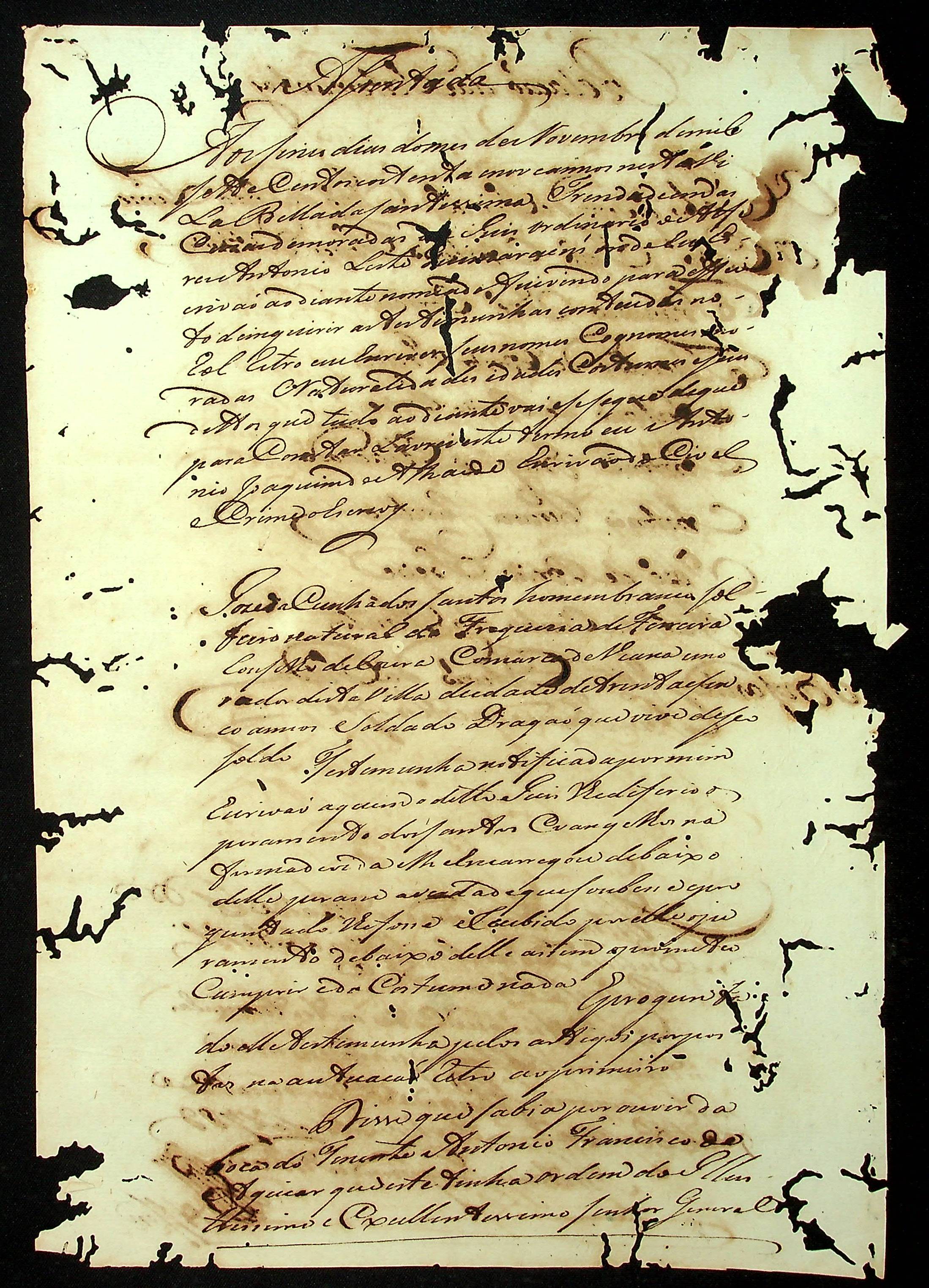 REQUERIMENTO do Tenente Antônio Francisco Aguiar para o [Governador e Capitão-General da Capitania de Mato Grosso João de Albuquerque de Melo Pereira e Cáceres].