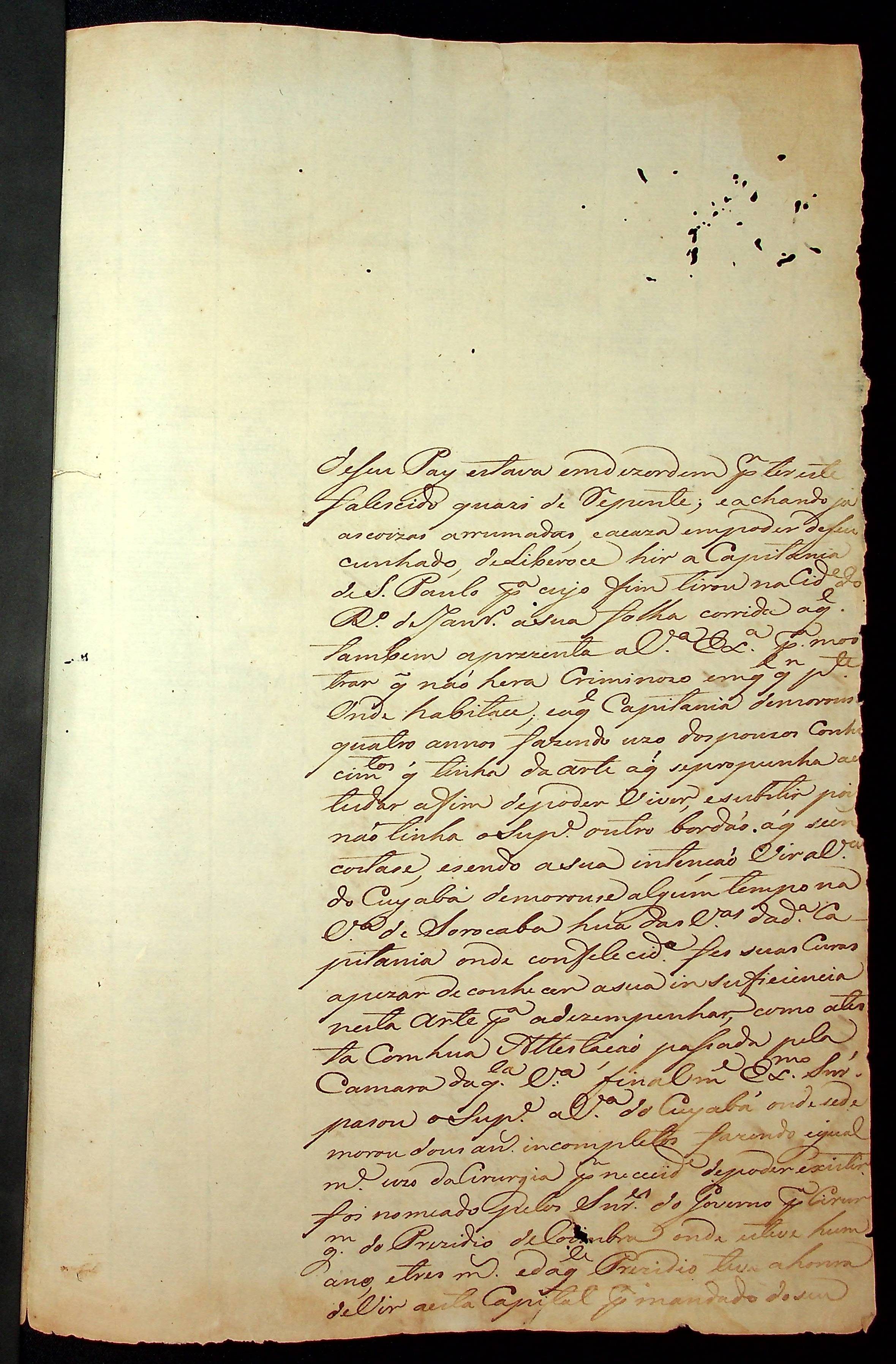 REQUERIMENTO do Alferes Manoel Fernandes Pimentel ao [Governador e Capitão-General da Capitania de Mato Grosso João de Albuquerque de Mello Pereira e Cáceres].