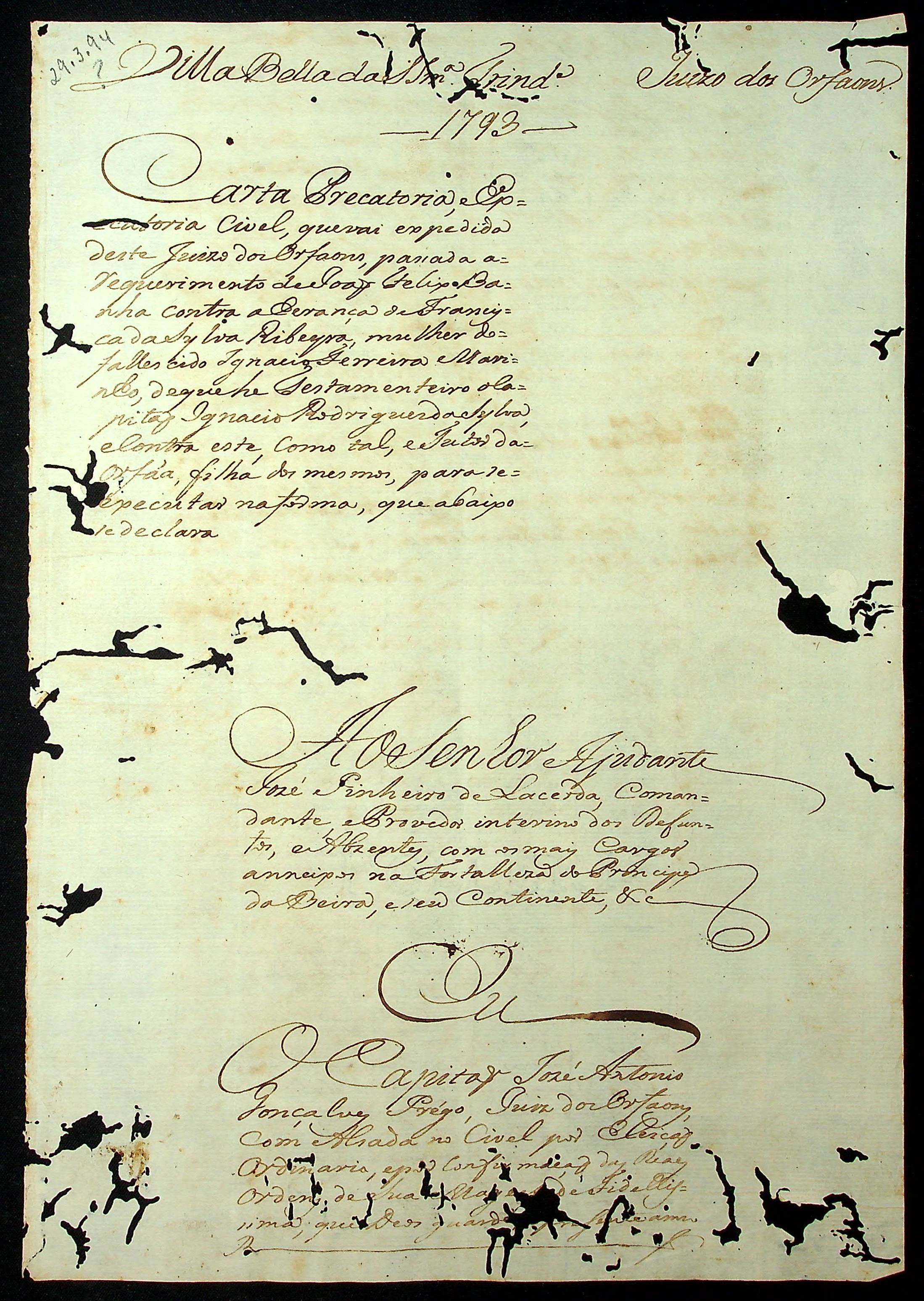 REQUERIMENTO de João Felix Banha ao [Governador e Capitão General da Capitania de Mato Grosso João de Albuquerque de Mello Pereira e Cáceres], sobre dívida expressa em carta precatória.