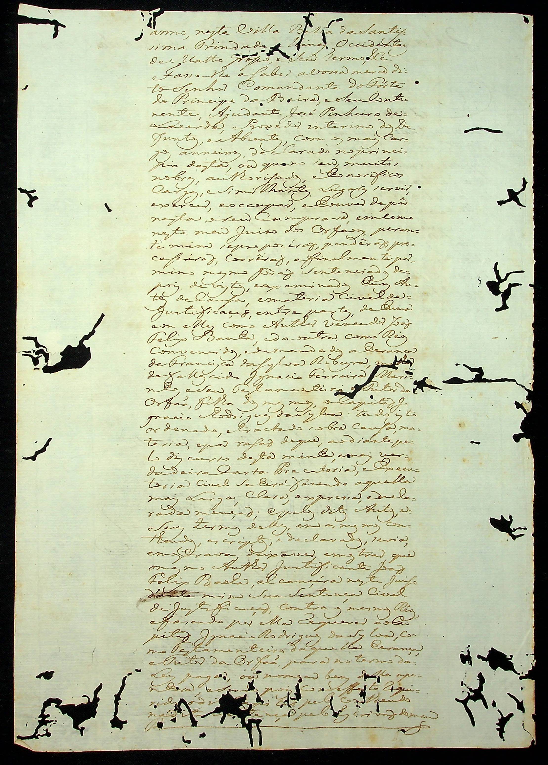 REQUERIMENTO de João Felix Banha ao [Governador e Capitão General da Capitania de Mato Grosso João de Albuquerque de Mello Pereira e Cáceres], sobre dívida expressa em carta precatória.
