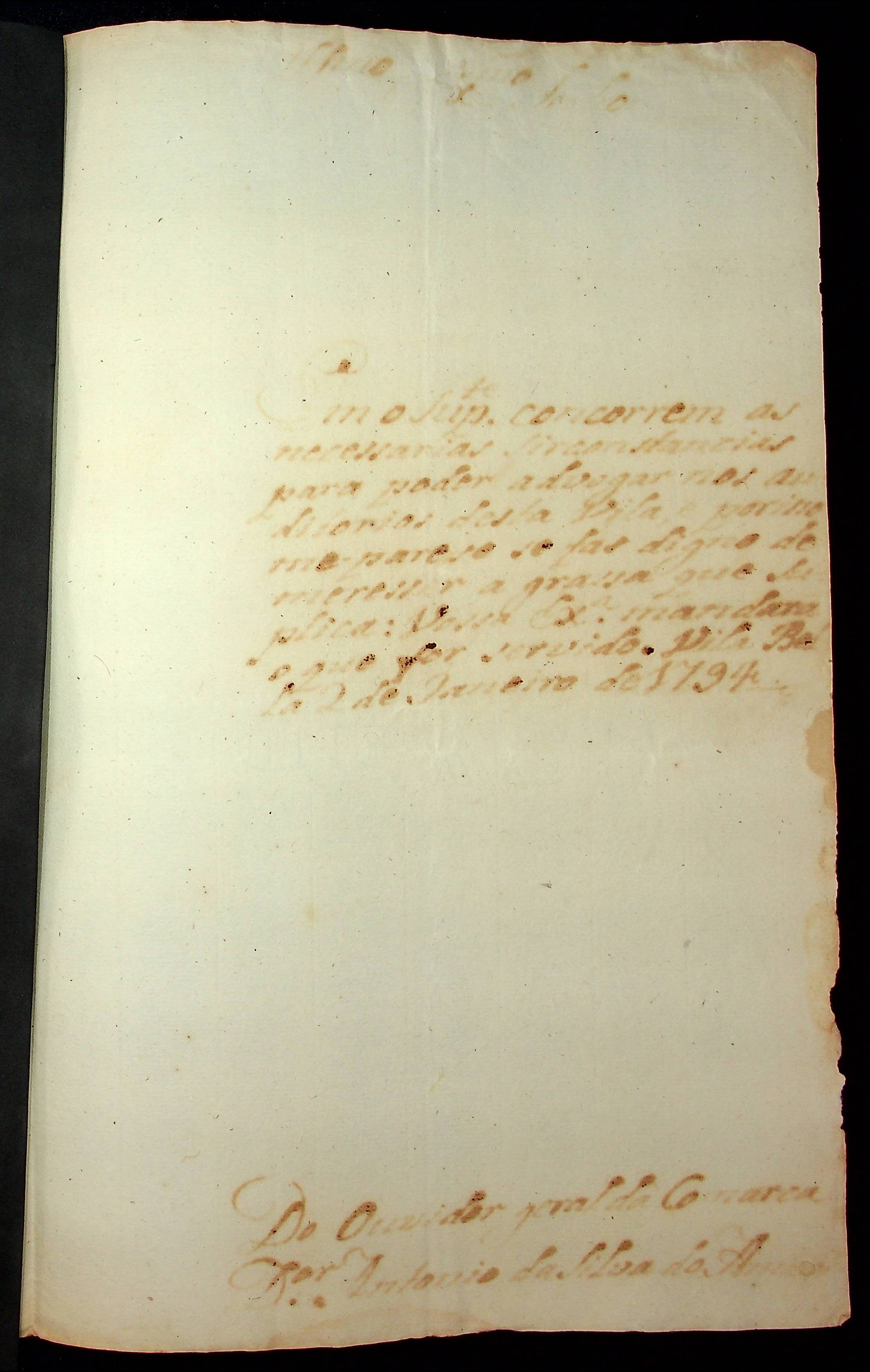 REQUERIMENTO de Antônio José Corrêa ao [Governador e Capitão General da Capitania de Mato Grosso João de Albuquerque de Mello Pereira e Cáceres], para exercer o ofício de advogado, nos Auditórios de Vila Bela.