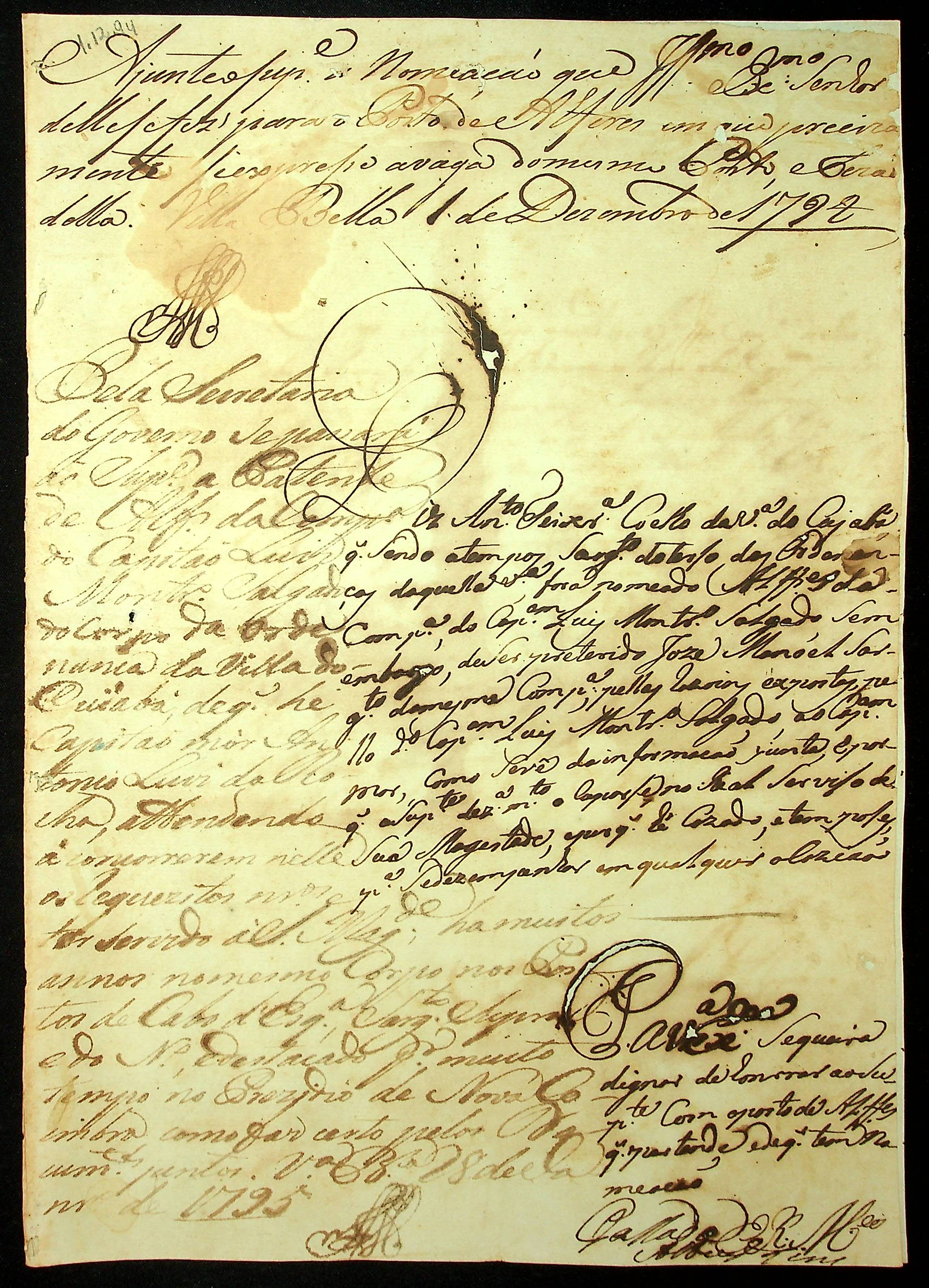 REQUERIMENTO de Antônio Teixeira Coelho ao [Governador e Capitão General da Capitania de Mato Grosso João de Albuquerque de Mello Pereira e Cáceres], solicitando o posto de Alferes.