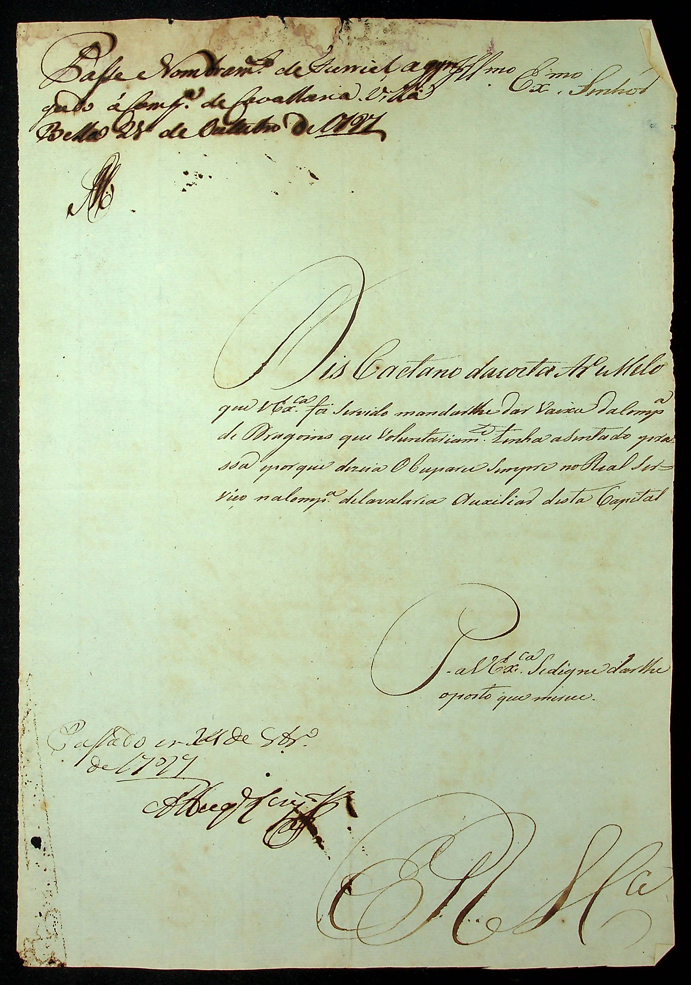 REQUERIMENTO de Caetano da Costa Araújo de Melo ao [Governador e Capitão General da Capitania de Mato Grosso Caetano Pinto de Miranda e Montenegro].