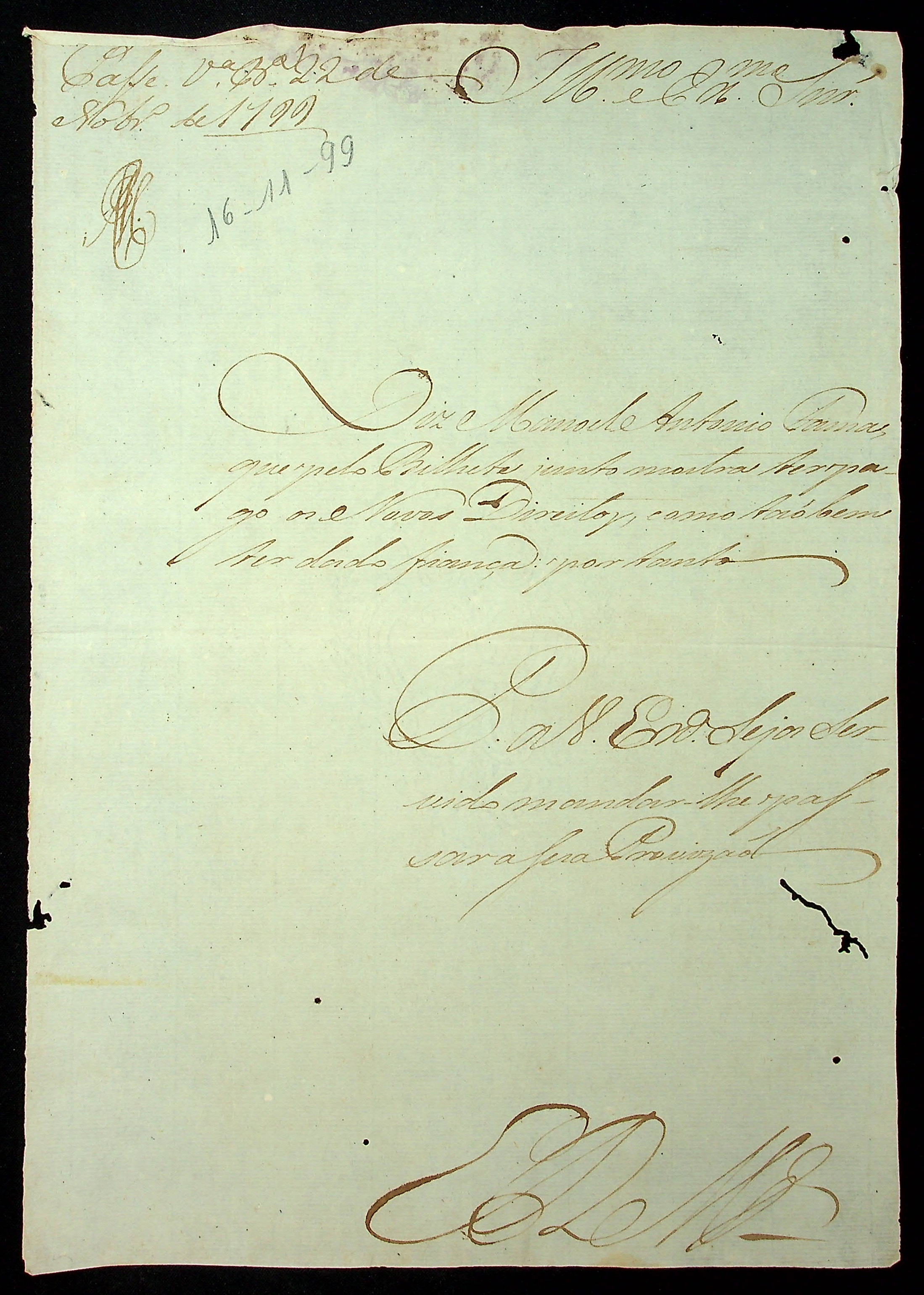 REQUERIMENTO de Manoel Antônio Fama ao [Governador e Capitão-General da Capitania de Mato Grosso Caetano Pinto de Miranda e Montenegro].
