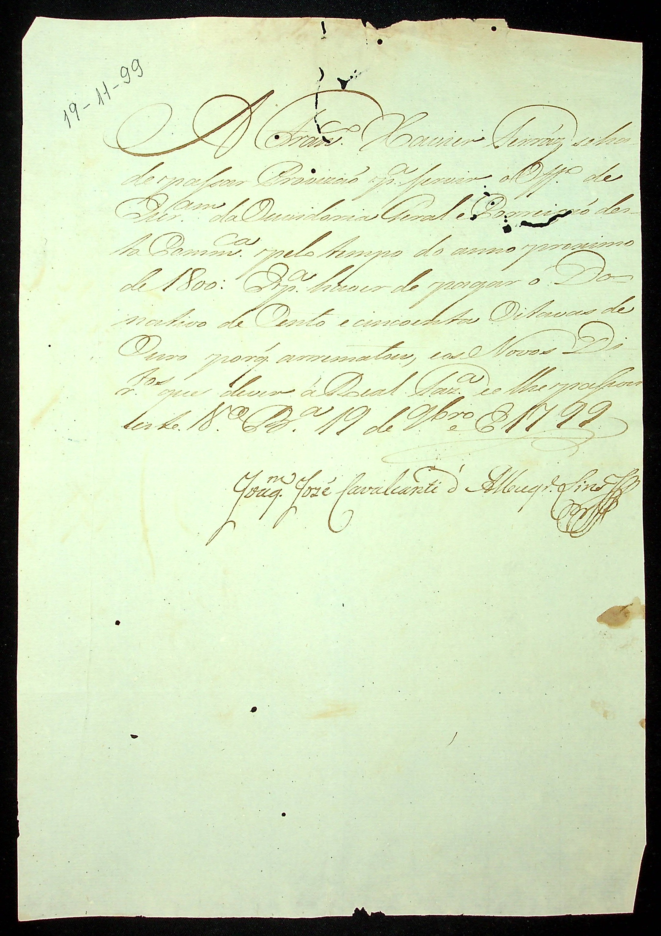 REQUERIMENTO de Francisco Xavier Ferraz ao [Governador e Capitão-General da Capitania de Mato Grosso Caetano Pinto de Miranda e Montenegro] pelo ofício de Escrivão da Ouvidoria.