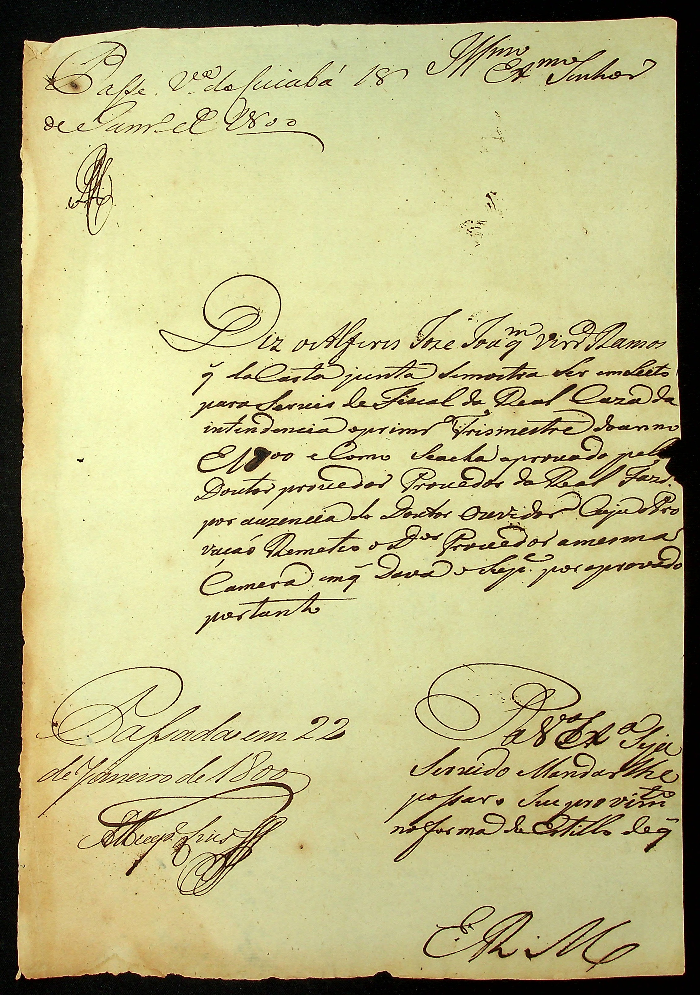 REQUERIMENTO do Alferes José Joaquim Vieira Ramos ao [Governador e Capitão-General da Capitania de Mato Grosso Caetano Pinto de Miranda e Montenegro] pelo ofício de Fiscal da Real Casa de Fundição.