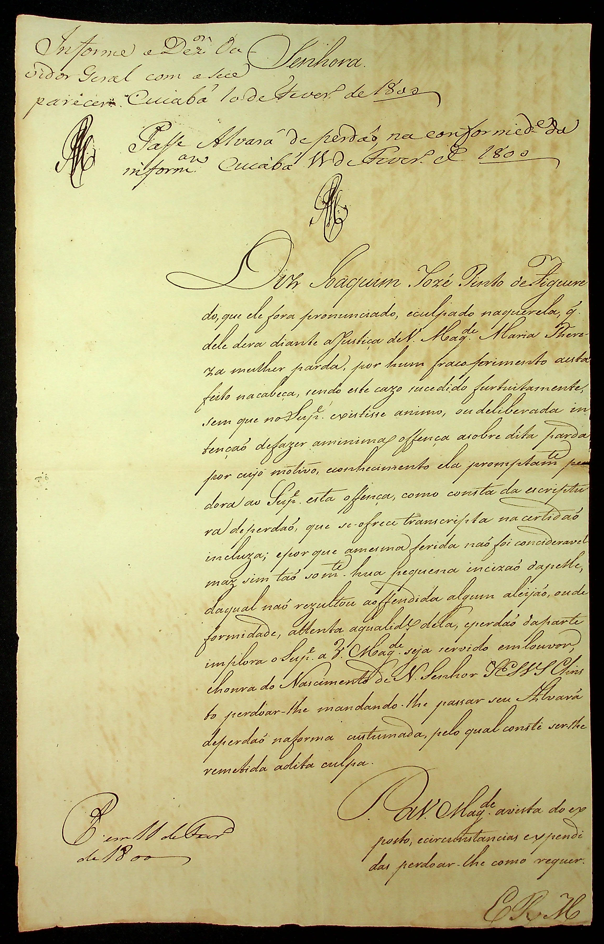 REQUERIMENTO de Joaquim José Pinto de Figueiredo ao [Governador e Capitão General da Capitania de Mato Grosso Caetano Pinto de Miranda Montenegro].