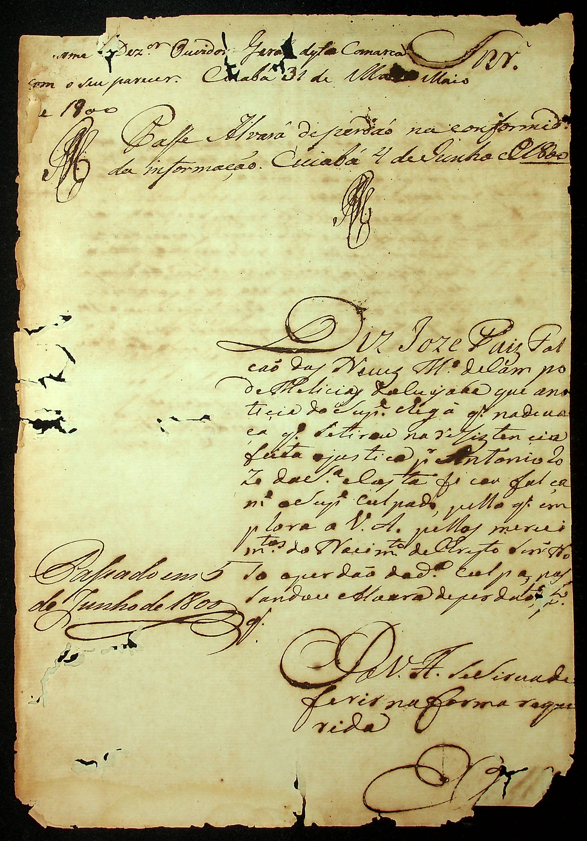 REQUERIMENTO de José Paes Falcão das Neves Mestre de campo de Milícias do Cuiabá ao [Governador e Capitão General da Capitania de Mato Grosso Caetano Pinto de Miranda Montenegro].