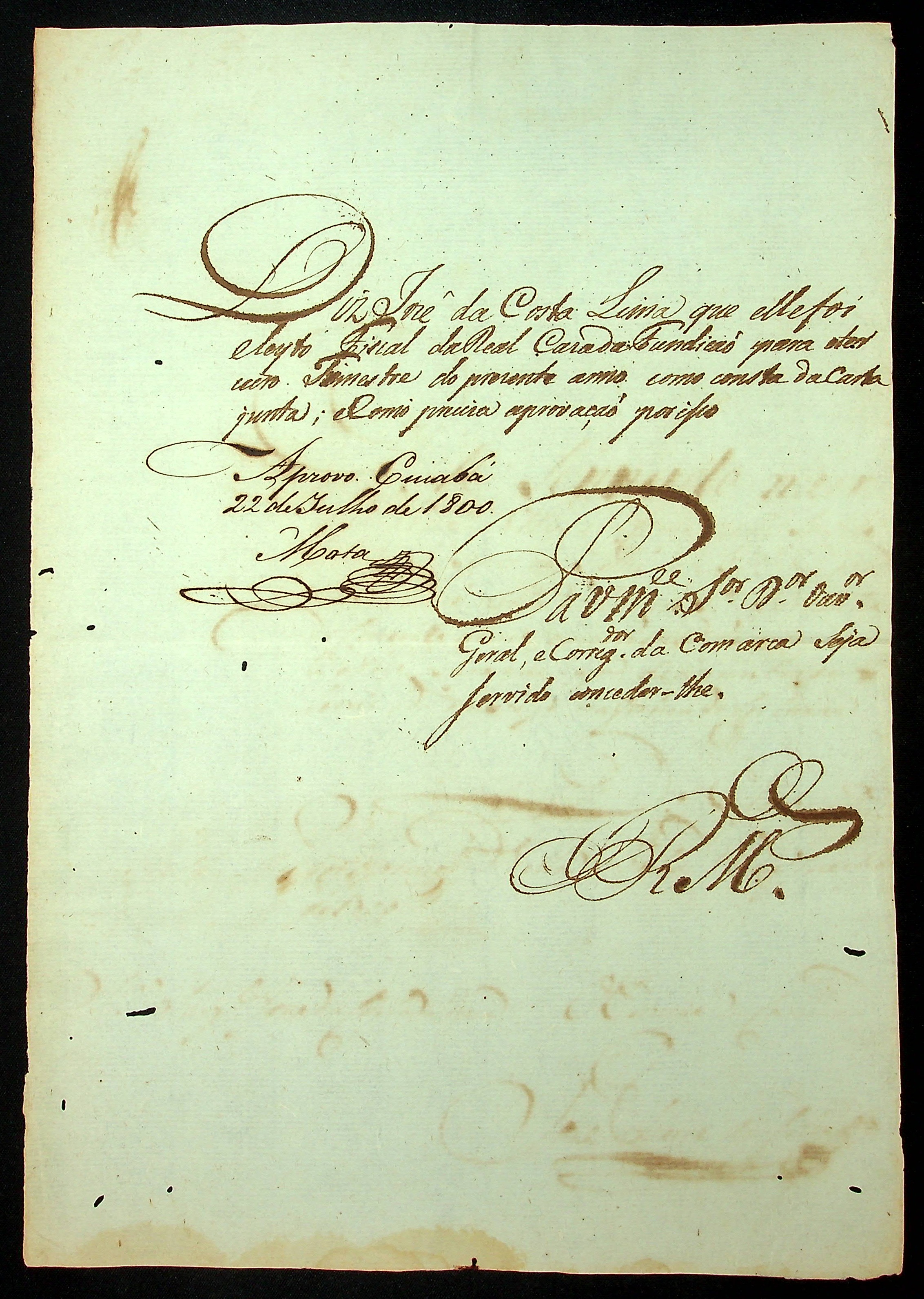 REQUERIMENTO do Sargento José da Costa Lima ao [Governador e Capitão-General da Capitania de Mato Grosso Caetano Pinto de Miranda e Montenegro] pelo oficio de Fiscal da Real Casa de Fundição.