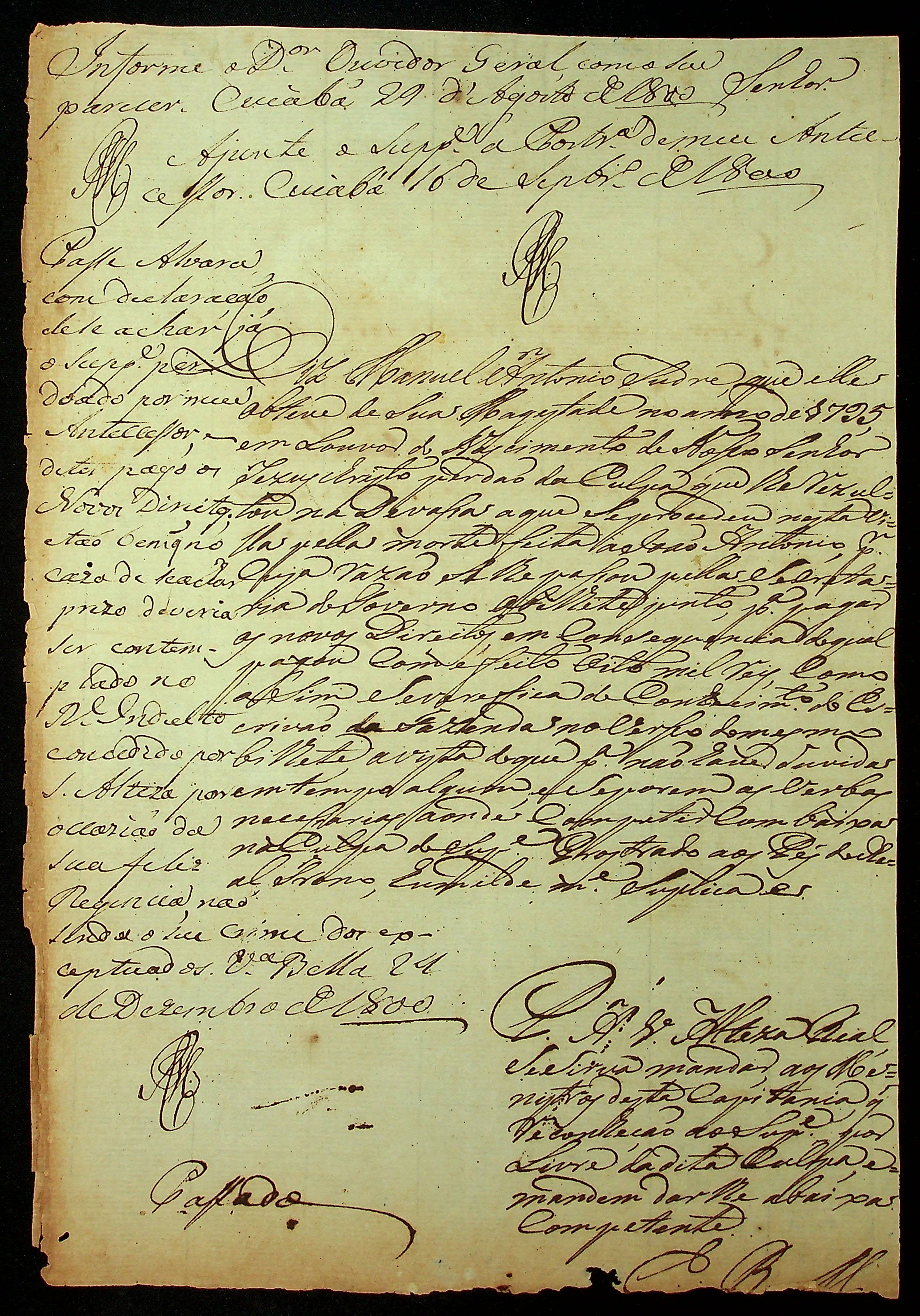 REQUERIMENTO de Manoel Antônio Sudre ao [Governador e Capitão General da Capitania de Mato Grosso Caetano Pinto de Miranda Montenegro].