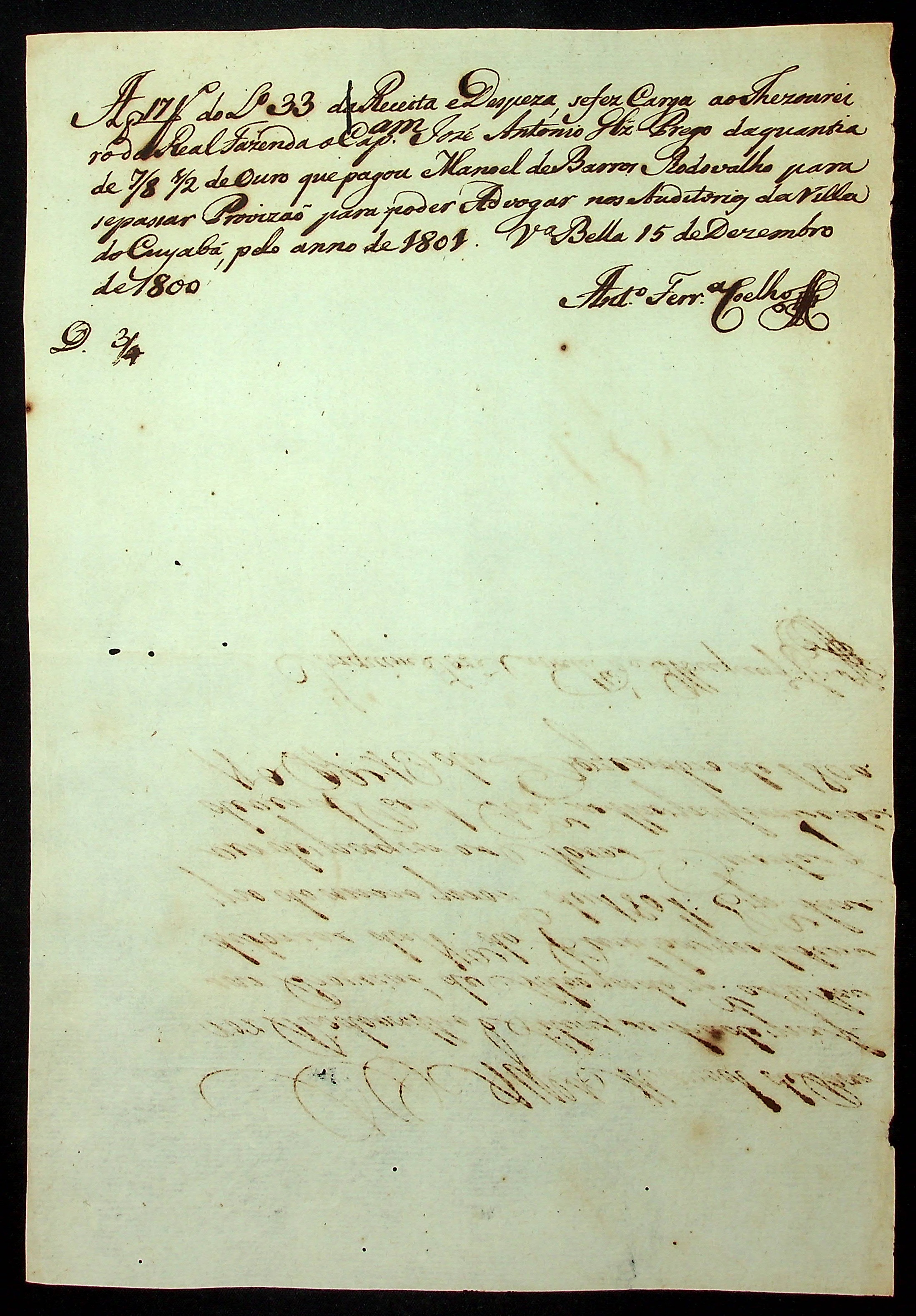REQUERIMENTO de Manoel de Barros Rodovalho e Silva ao [Governador e Capitão General da Capitania de Mato Grosso Caetano Pinto de Miranda Montenegro] para advogar nos Auditórios da Vila do Cuiabá.